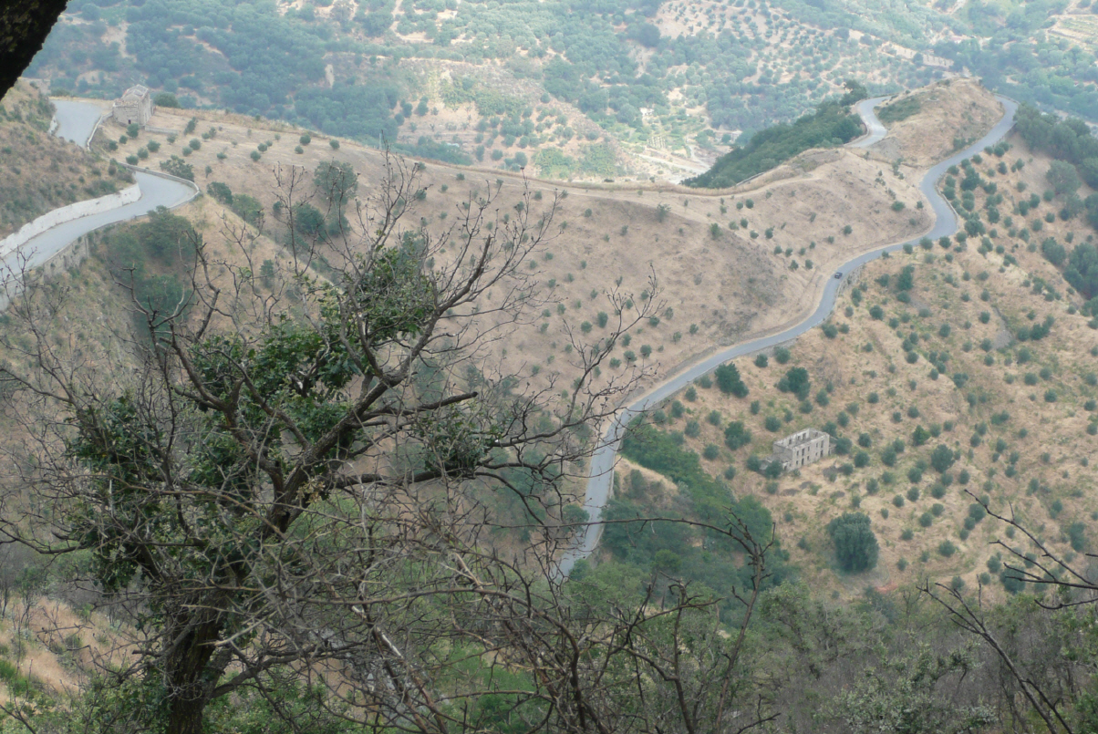 Kurz das Strassenstück zurück nach Lamia. Dann über einen gut ausgebauten Pass (720 m) durch eine grosse Ebene. Hier wird vorwiegend Landwirtschaft betrieben. Weiter über Kardista, Trikula zu den Meteora Klöster bei Kalambaka. 2 km nach Kalambaka fährt man über einen Bergrücken und findet sich urplötzlich in einer ganz anderen Bergwelt wieder.