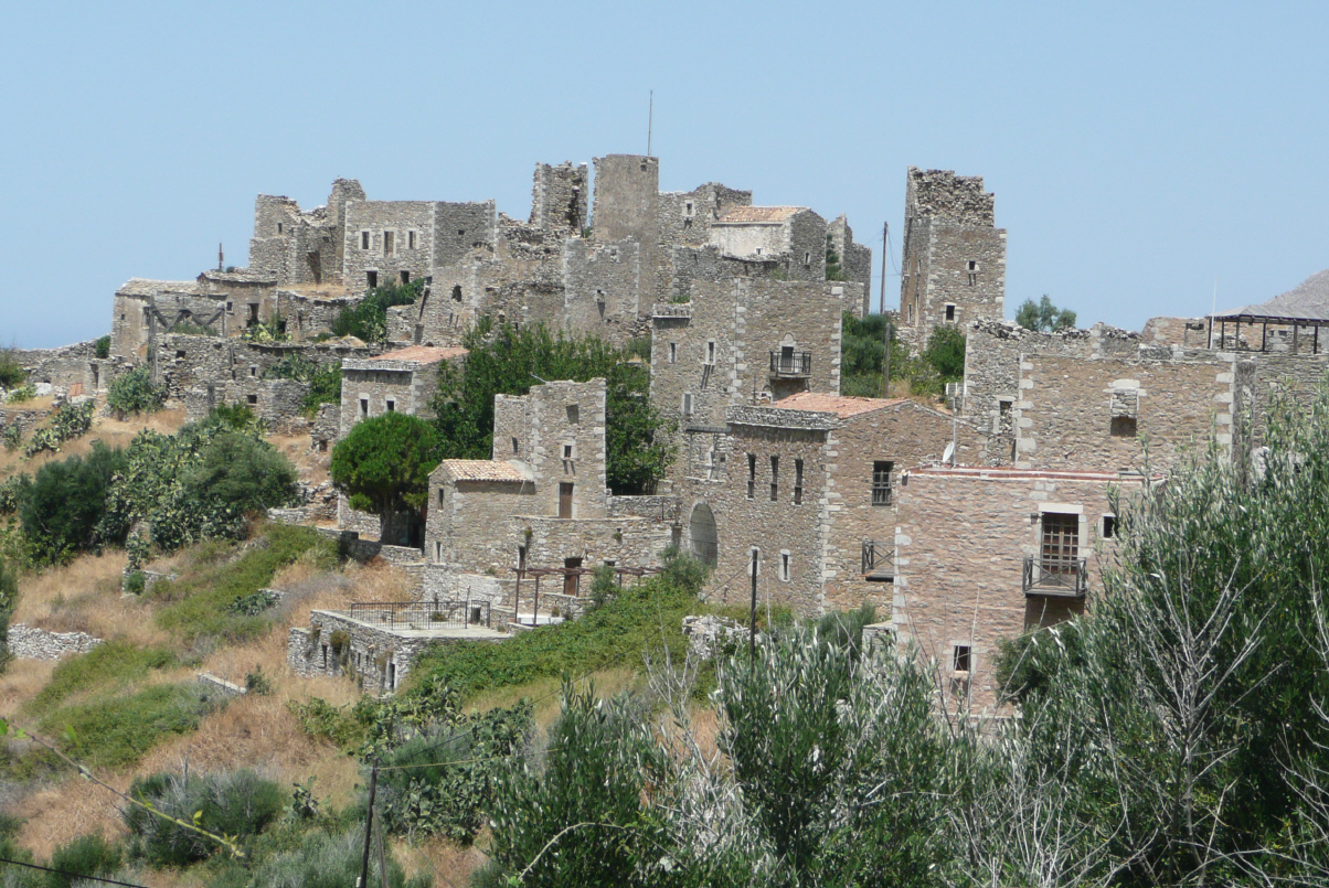 Umrunden die Halbinsel Mani mit dem durch seine Wohntürme bekannten verlassenen Bergdorf Vathia. Am Ende in Port Kagio erholen wir uns mit einem kühlen Meerbad ein wenig von der Hitze. In dieser Gegend sind ausgezeichnete Maurer am Werk, welche wunderschöne Wohntürme und Mauern aus Bruchsteinen bauen können. Wieder nach Areopolis zurück durch karge Landschaften – sobald es nur wenig Wasser hat stehen Orangenbäume in Hülle und Fülle - nach Areopolis und weiter über Gythion in das Touristen-Städtchen Monemvassia (vorwiegend von Einheimischen besucht). Wir sind hundemüde, nehmen die Stühle heraus und essen Wassermelonen. Hier auf dem Parkplatz werden wir das erste Mal von einem Polizisten aufgefordert, den Platz zu verlassen ‚no camping‘. So ‚parkieren wir nur, überlisten uns und gehen zu Fuss in der brütenden Abendsonne ins Städtchen – unterwegs bemerkt Kaspar, dass er keinen Cent in der Tasche hat, nur Bigi die Wasserflasche in der Hand! Da wir keine Lust auf abendliche Diskussion mit dem Polizisten haben fahren wir danach 3 km zurück zu einem einsamen Strand. Bei heissen 32 Grad sitzen wir vor dem Camper am Strand und müssen beim Einnachten vor den Mücken fliehen.
