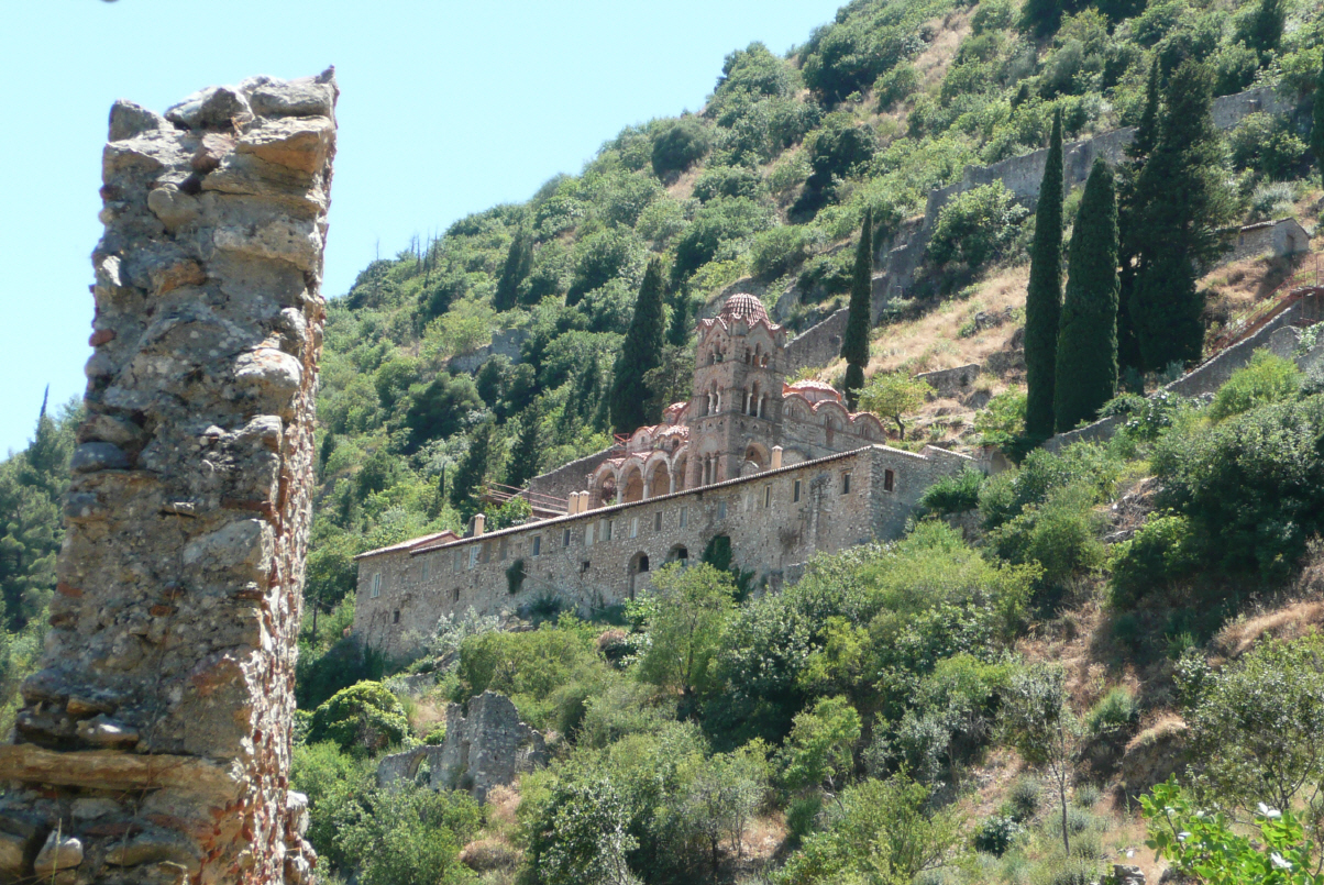 Sind relativ früh wach und fahren zurück nach Monevassia, schlendern durch das antike Städtchen und besteigen den Berg, um die allerdings zerstörte Oberstadt mit der einzigen übriggebliebenen orthodoxen Kirche zu besuchen. Herrliche Aussicht auf die Unterstadt, das Meer und die Küste. Nachher in die Neustadt mit Bigi auf Shopping Tour. Bigi ersteht sich eine schöne tief rote Glasplatte und in einer teuren Spezialitäten-Bäckerei die trockensten und süssesten Guetzli – Kaspar lebt lieber nach dem Motto: ‚was der Bauer nicht kennt ……‘. Sparta lassen wir rechts liegen (hier leben die Leute ja spartanisch) und fahren direkt nach Mystras.