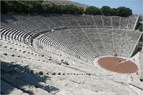Aufstehen, ein Kreuzfahrtschiff ankert und wir beobachten die kleinen Schiffe von ferne, welche die Passagiere zu einem Landausflug bringen. Viele Busse und Taxis warten auf ihre Gäste, denn heute kann Geld verdient werden. Wir fahren nach Epidauros, wo sich ein riesiges Amphitheater befindet: 55 Ränge und wir schätzen ca. 25‘000 Zuschauer. Imposant! Nachher noch kurz die Ruinenstadt, welche zu 10 % wieder aufgebaut wird, um den Besuchern einen besseren Überblick zu bieten.