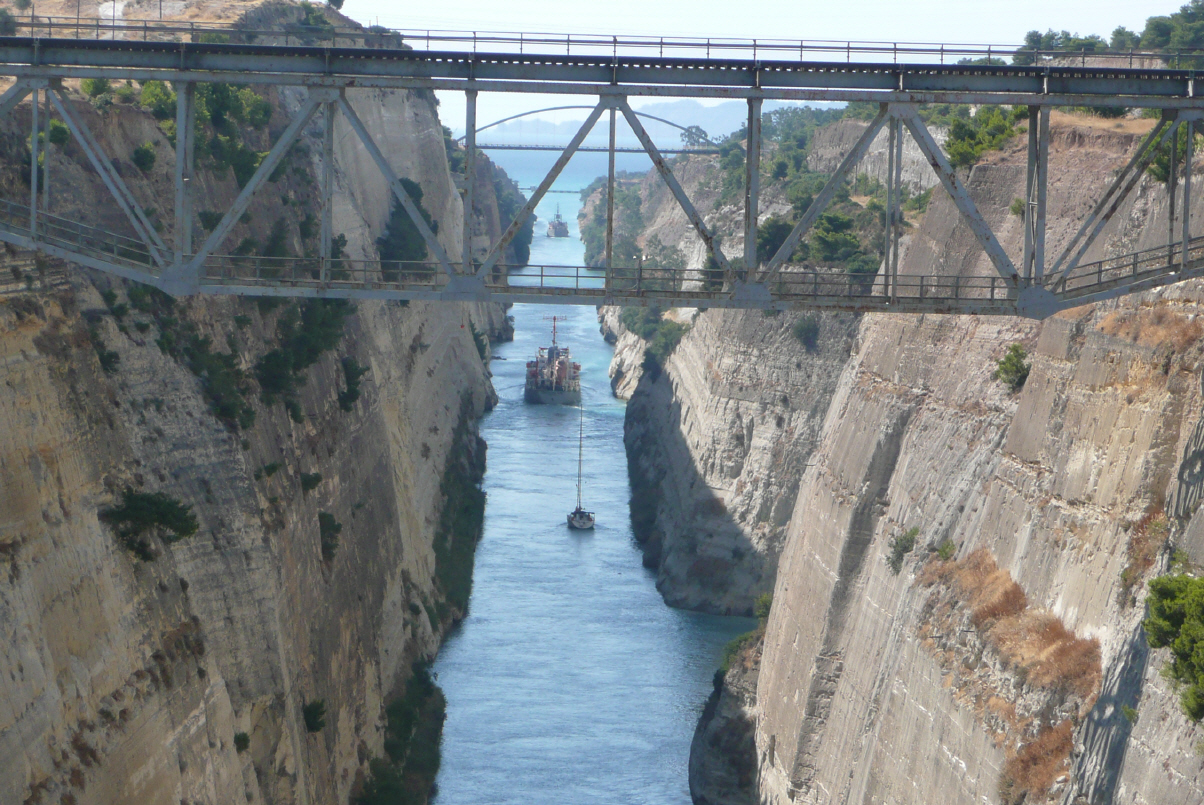 Weiter Richtung Korinth, wo wir am Strand kurz eine Siesta einlegen. Heute ist das Wasser etwas kälter. Prüfung mit dem Kühlschrankthermometer: nur 26 Grad! Nun wollen wir zum Kanal von Korinth. Mit der Landkarte finden wir diesen auch, denn von blossem Auge fast nicht zu erkennen, oder erst wenn man darüber fährt. Der Kanal von Korinth, welcher von Ungarn 1881-1893 auf einer Länge von 6343 m ausgegraben wurde. Die Tiefe unter der Wasseroberfläche beträgt 8 m und die breite auf Wasseroberfläche 21 m. Es fahren gerade zwei Tanker (einer wird geschleppt) und ein Segler durch den Kanal. Eindrücklich, da runter zu schauen. Wir fahren hinüber und folgen der Küste bis nach Vuliagmenis, einer schönen Bucht wie ein See, so sein Name ‚Lake‘. Hier stehen wir und geniessen den Abend und eine laue Nacht.