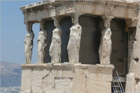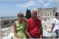 Auf direktem Weg nach Athen in das 5 Mio. Grossstadtgewühl. Kaspar in seiner grenzenlosen Unwissenheit meinte, dass es für unser kleines Fahrzeug bei der Akropolis einen Parkplatz gibt. Auf dem Weg, wie wir nach Athen herein schleichen (Stau, Rotlichter etc.), gibt es keinen Wegweiser zur Akropolis – wieder einmal nur von der anderen Richtung ersichtlich – und die Akropolis auf dem Hügel können wir auch nirgendwo erspähen. Also kurven wir rum – Sightseeing der Altstadt mit dem Camper – bis wir den schmalen Parkplatz bei der Akropolis finden. Natürlich keine Parkchane – Bigi hatte wieder einmal Recht. Weiter rumkurven bis zum Bus-Parkplatz, zweimal vorbei fahren, keine Chance! Die Spannung und die Hitze im Camper steigt merklich an. Fahren frustriert wieder Richtung Meer und parkieren weit ausserhalb, jedoch immer noch auf Stadtgebiet. Ein Taxi wird gerufen - wir lassen uns den Einsteigeort notieren, damit wir später eine Chance haben, unseren Camper wieder zu finden – und lassen uns auf dem uns bekannten Weg zur Akropolis chauffieren.