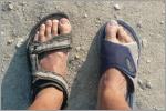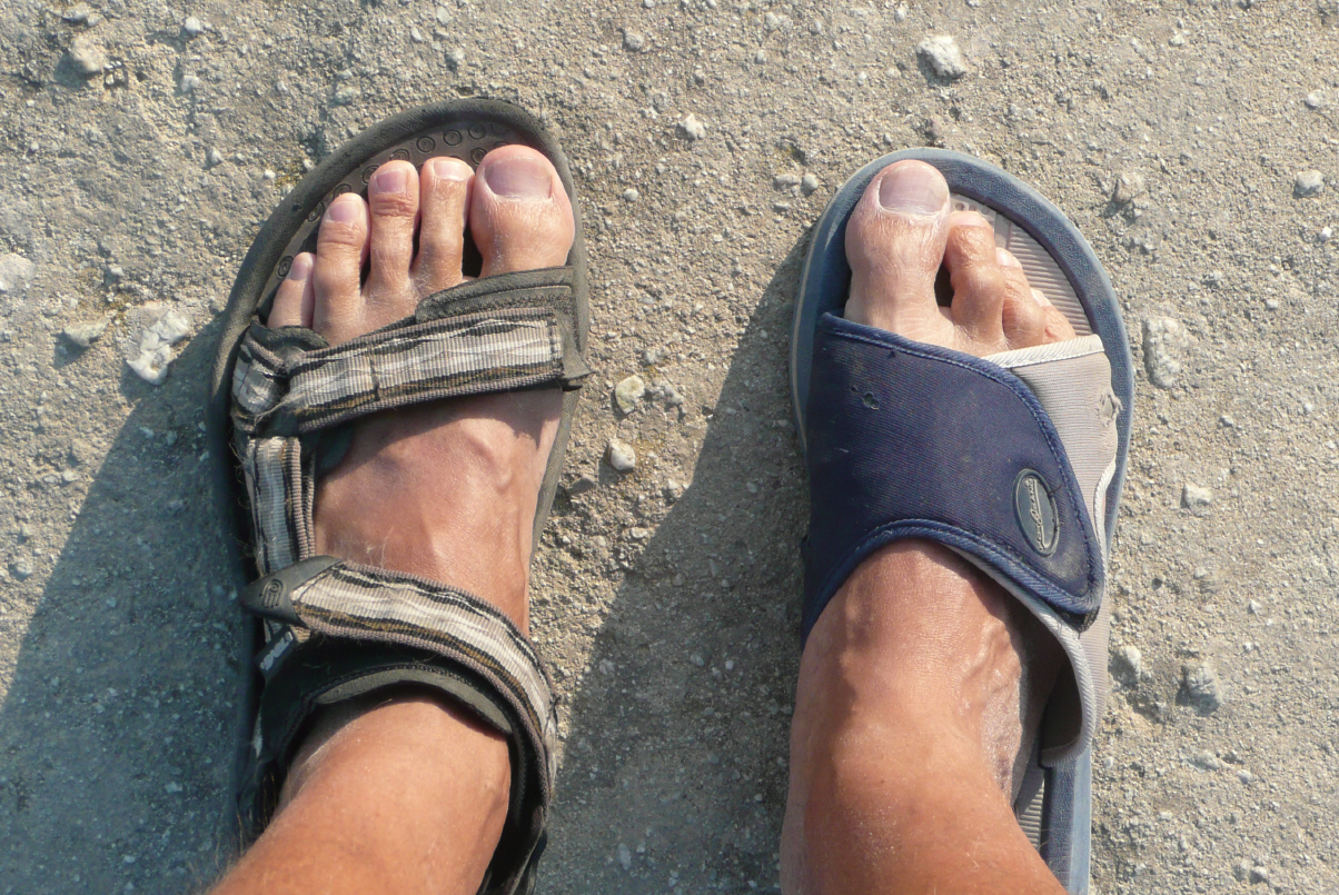 Am Morgen sind Kaspar’s Schuhe weg! Von den Badeschlappen finden wir nur noch den rechten. Von den teuren für alle Zwecke getragenen ‚Heiland‘-Sandalen wurde der rechte hoffnungslos verbissen und ist unbrauchbar. Wahrscheinlich haben die streunenden Hunde die Schuhe aus Übermut weggeschleppt. Vielleicht waren sie auch etwas sauer, da sie von unserem Tisch keine einzige Brosame erhalten haben.