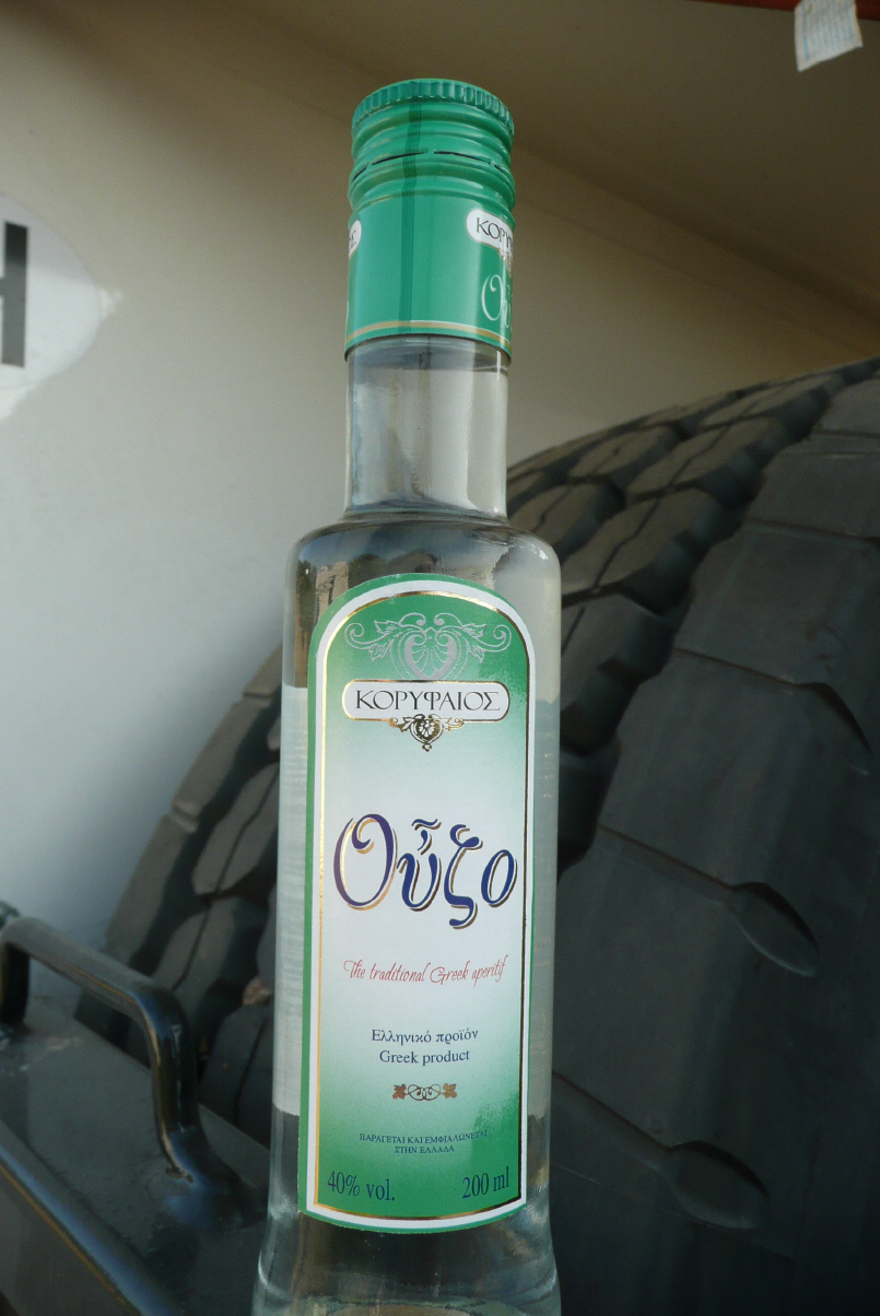 Uhr eine Stunde vorstellen für griechische Zeit. Diese Diesel verstunckene heisse Nacht möchten wir nicht missen. Gerädert, verschwitzt und schlecht geschlafen, aber trotzdem guter Laune begeben wir uns um 06.30 Uhr mit einer Tasse Kaffe in der Hand auf Deck um zu verlüften. Das Schiff liegt im Hafen der Insel Kefalina und lädt vier Camper aus. Pünktlich um 10.30 Uhr landen wir in Patras. Das Entladen geht massiv schneller als Beladen des Schiffes (unorganisiert und zuletzt müssen die 40-Tönner rückwärts hinein fahren). In Patras halten wir in einer Kaffee-Bäckerei an um Brot zu kaufen. Zum Glück gab es ein Schild mit Bild, denn die griechischen Buchstaben können wir nicht entziffern.