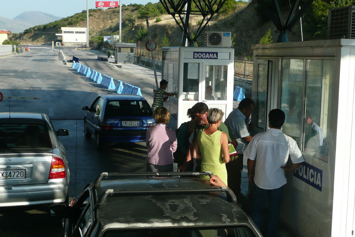 An der Grenze zu Albanien hat Kaspar als Chauffeur ein Papier erhalten, dass er beim Verlassen des Landes abstempeln muss und 2 Euro bezahlt. Zudem kostet die Eco Taxe für Montenegro 30 Euro. Mit etwas Geduld ist die Zollabfertigung jedoch jeweils kein Problem. Der Grenzverkehr hier ist praktisch inexistent, so etwa 10 LKW stehen hier und einige PWs. Alles ohne Stress, eine LKW-Kolonne wie in Chiasso oder Basel kaum denkbar.