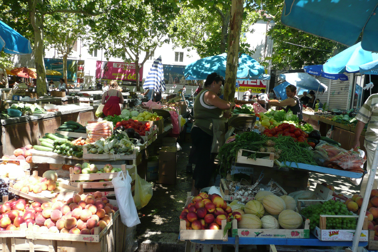 Morgenbad im Meer, Frühstück und das Campingleben beobachten und kommentieren. Dann nach Split zum uns bekannten Parkplatz beim Stadion und zu Fuss in die Altstadt. Wir besteigen den Kirchturm und flanieren durch die Gassen. Auf dem Gemüse-, Fisch, Brot- und Käsemarkt wird eingekauft. Das Poulet für 40 Kn (8 CHF) schmeckt uns dreien hervorragend! Für uns ein MUSS in Split und es bleiben sogar Resten fürs Nachtessen. Der Küste entlang bis Marina, wo wir einen Platz zum baden finden. Via Sibenik fahren wir in den Nationalpark ‚Krka‘ und übernachten auf dem gleichen Platz wie letztes Jahr. Überhaupt geniessen wir es, dass wir uns hier noch vom letzten Jahr auskennen und das Reisen somit nicht so harte Arbeit ist. Der Camping hat inzwischen einen Stern erhalten; es wurde gebaut, vergrössert und es hat diesmal auch viele Camper. Die Solothurner sind hier einmal in Überzahl!
