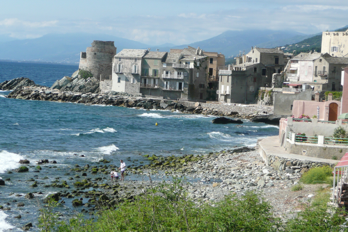 Was für eine unruhige Nacht! Aufstehen und baden (Bigi ist ein Gfrörli), Brot kaufen und weiter gegen Norden. In Erbalunga, einem kleinen alten Fischerdorf mit Korsischem Wachtturm (dieselben sind an der ganzen Küste anzutreffen) gibt’s das zweite Frühstück. Weiter über schmale und schmalste Strassen und Pässe zum Cape Corse.