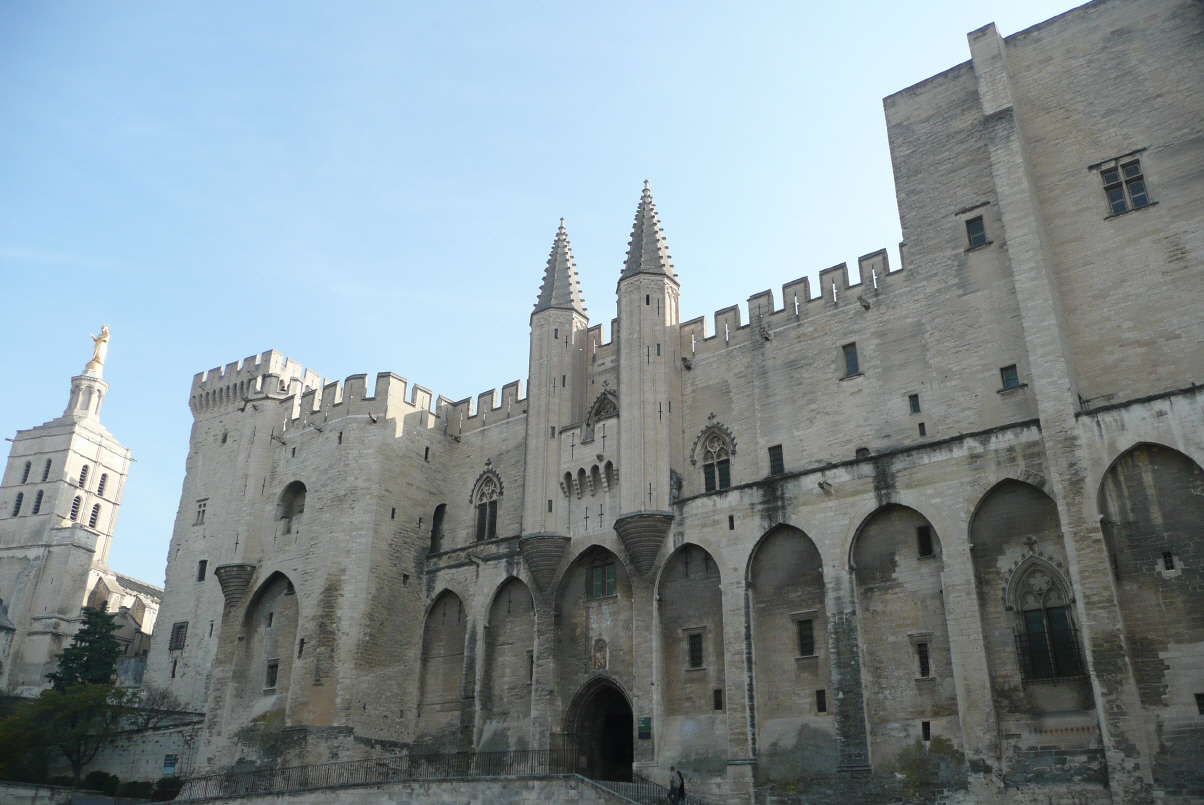 Auf Nebenstrassen der Rhone entlang nach Avignon. Bummeln in die Altstadt und suchen ein am Sonntagmorgen geöffnetes Kaffee, denn was gibt es schöneres als Kaffee und Croissant. Nun ist das letzte Mal der Reise 2009 Kultur angesagt: besuchen den ‚Palais des Papes‘. Hier residierten im 13./14. Jh. für ca. hundert Jahre die Päpste, da in Italien der Bürgerkrieg herrschte und die Sicherheit in Rom nicht gewährleistet war. Der Palais ist enorm gross. Leider fehlt jegliches Mobiliar. Eine zahme Katze streicht durch das Palais und wird von vielen Besuchern gestreichelt und vermutl. vom Personal gefüttert. Die Päpste hier waren sehr reich, denn dies sieht man an ihren Tresoren. Im Jahre 1402 wütete ein verheerender Brand, der das Meiste zerstörte; vor allem Wandmalereien, Decken, Gobelins und Möbel. Besteigen den Turm und haben eine schöne Rundsicht auf Avignon, die Rhone und den berühmten und viel besungenen Pont d’Avignon.