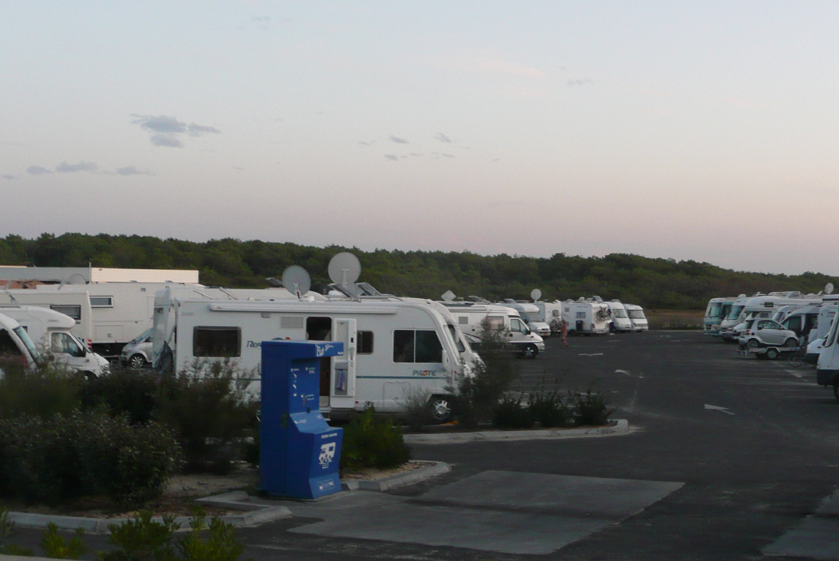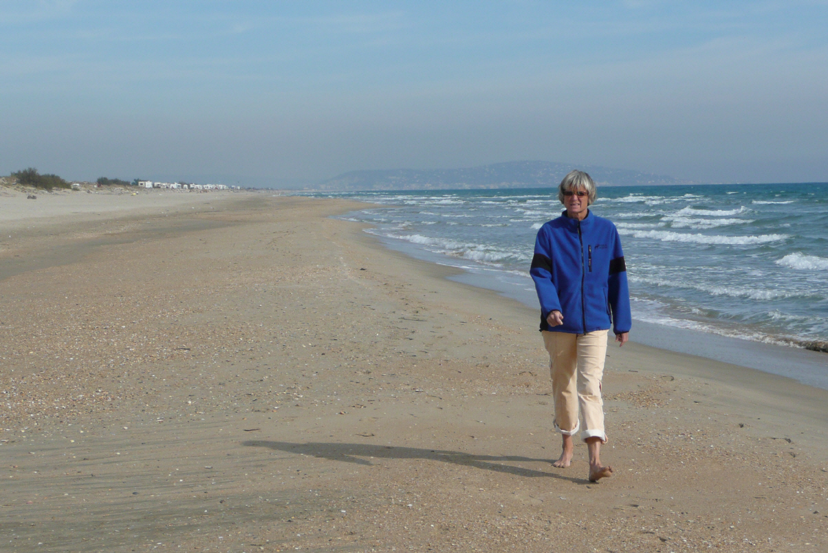 Fahren die D6113 nach Narbonne, D6009 nach Beziers, N112 über den Damm. Hier rasten wir, denn wir haben genug von Kultur und haben uns die letzten zwei Orte nicht angeschaut (auch keinen uns passenden Parkplatz in der Nähe gefunden). Auf dem Damm in Nähe Sète stehen ca. 50 Camper in Reih und Glied und wir stellen uns dazu. Wie Kaspar schon ahnt gibt’s einen Fussmarsch dem Meer entlang und geniessen noch einmal die Weite. Bigi nimmt noch ein kurzes Bad und schliesst auch ihre Badesaison 2009 ab.