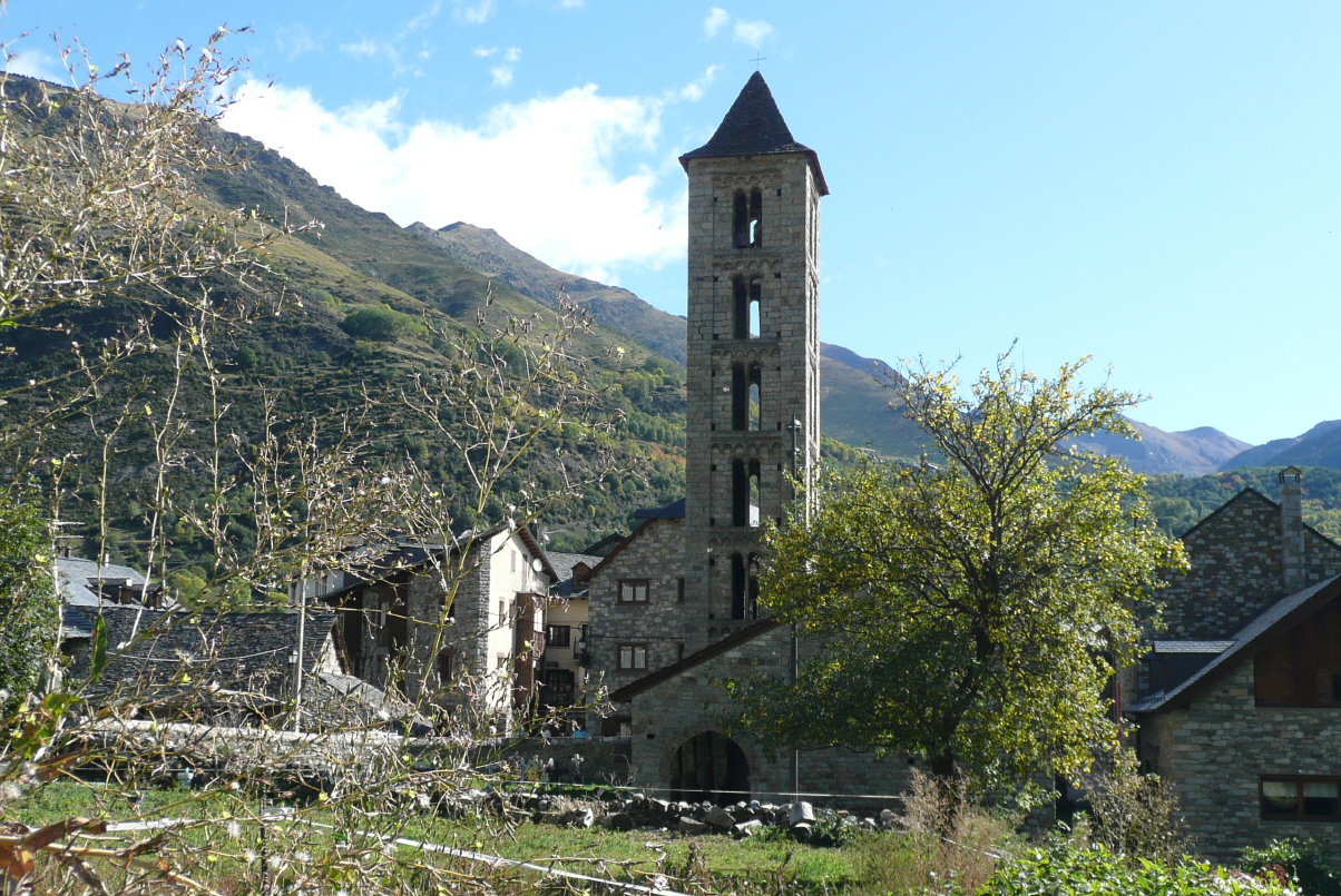 Bleiben noch einen Tag. Der Himmel ist wieder fast wolkenlos. Marschieren mit Rucksack ins Dorf und geniessen erst einmal Kaffee und eine Tortilla. Im Vall de Boi gibt es 8 Kirchen, welche im romanischen Stil (11./12. Jh.) gebaut wurden. Heute ein UNESCO-Weltkulturerbe. Wandern das schöne Tal zwischen Hecken und Sträuchern dem Fluss entlang bis hinauf nach Eill la Vall. Hier besichtigen wir die erste Kirche und besteigen auch den Kirchturm. Dann eine kurze Strecke nach Boi zur nächsten Kirche. Unterwegs sammeln wir Brombeeren fürs morgige Frühstück. Ein Knie von Kaspar macht leider die Strapazen nicht mehr mit und so entscheiden wir uns, nur noch den eineinhalbstündigen Rückweg ohne Umweg zu nehmen. Auf dem Weg haben wir Heuschrecken gesehen, welche einigermassen gut fliegen können. Die Heuschrecke ist dunkelgrün, wenn sie jedoch fliegt hat sie hellblaue Flügel wie ein Schmetterling. Sitzen noch etwas in der Abendsonne und Kaspar putz die Wanderschuhe – unser spanischer Nachbar putzt den Camper aussen. Wir wundern uns öfters über die blitzblanken Wohnmobile – die Männer haben wohl nichts zu tun! Nach dem Essen laden wir ein verliebtes Deutsch/Spanisches Pärchen zum heissen Tee zu uns ein. Haben ein gutes und lustiges Gespräch. Jetzt wissen wir auch, weshalb es hier im Tal nur so von Spaniern mit Kind und Kegel (und Hunden) wimmelt: morgen Montag ist ein Feiertag und die Leute kommen hier rauf ins verlängerte Wochenende (von Barcelona nur 3 Stunden Fahrzeit).
