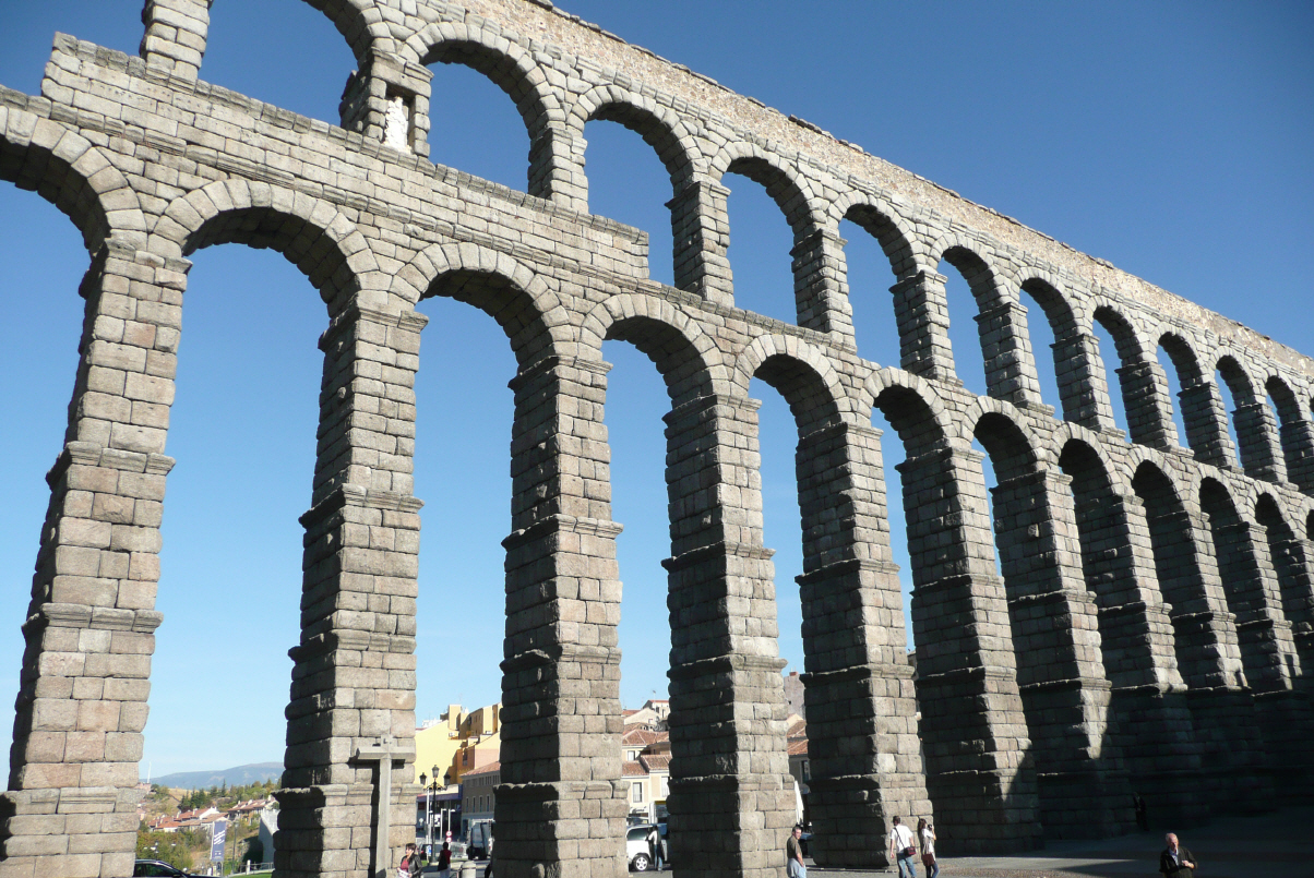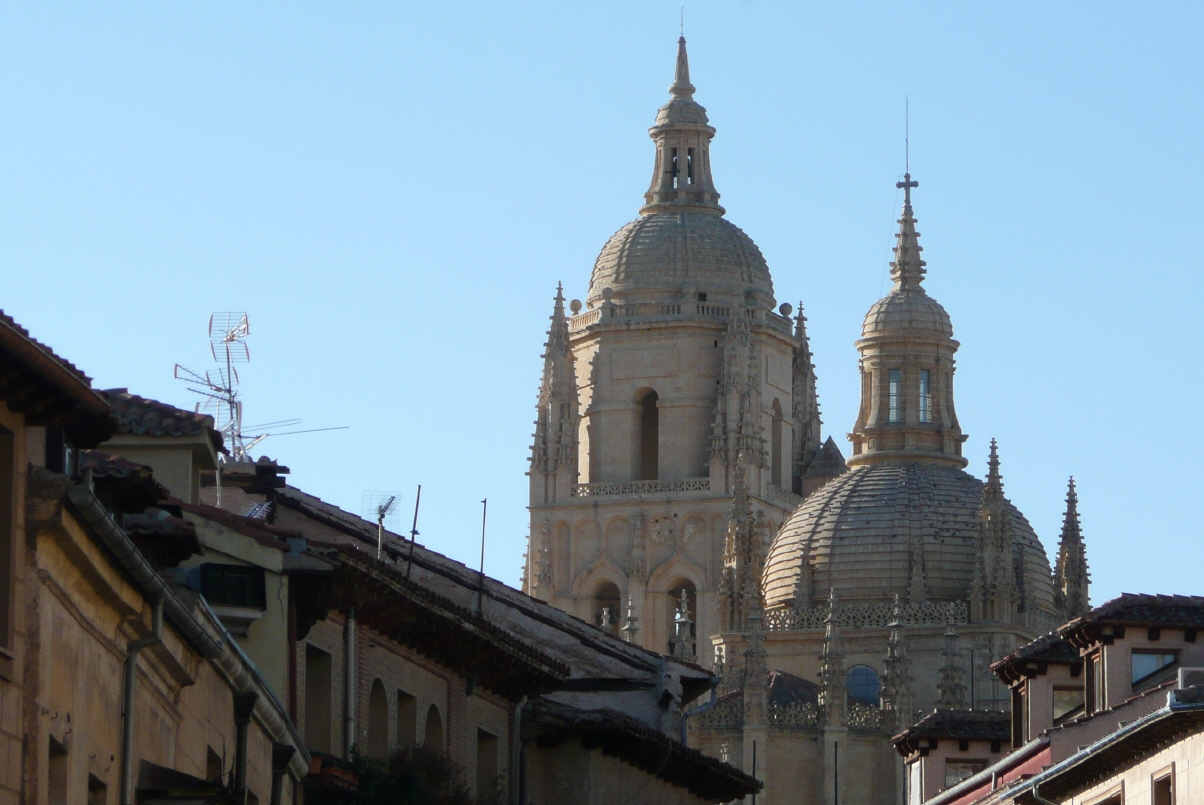 Kaspar sind die Pilze nicht gut bekommen. Er hat den Sch….. Bigi hat Geburtstag und bekommt schon früh Telefone und SMS von Eltern und Freunden. Fahren die N320 nach Guadalajara, wo sich Kaspar prompt in die Innenstadt mit den schmalen Strassen verirrt, da Bigi am Telefon mit Jack und Co. hängt. Erstaunlicherweise finden wir hier am Strassenrand einen Parkplatz am Rande der Altstadt. Sind von der Altstadt enttäuscht, der Hauptplatz wird total umgebaut. Bei der Weiterfahrt erst bemerken wir, dass die Schönheiten etwas ausserhalb der Altstadt liegen. Die N320 weiter bis Torrelaguna und dann links weg die Nr. 604 über zwei Pässe (1794 und 1860 m). Die schmale Strasse schlängelt sich steil dem Berg entlang. Wir haben eine gute Aussicht auf das ferne Madrid mit den Hochhäusern und erschrecken über den Smog, der über der Stadt liegt. Auf dem ersten Pass stehen Nadelbäume schön in Reih und Glied gepflanzt. Im Talgrund kommen wir zum Monasterio del Paular. Das Monasterio beherbergt heute nur noch ein Sheraton Hotel. Hier gönnen wir uns eine ganz schön teuren Kaffee für 3 Euro (Normalpreis in Spanien 1 Euro). Was machts, Bigi hat ja heute Geburtstag! Auf dem zweiten Pass sehen wir etwa 5 Skilifte und ein gross angeschriebenes Hospital für Skiunfälle. Madrid ist jetzt 60 km entfernt. Nun fahren wir die 601 über viele Serpentinen hinunter nach Segovia. Hier stehen wir in Sichtweite des grossen römischen Aquäduktes mit seinen 166 Bögen und 28,6 m Höhe. Wurde alles ohne Mörtel gebaut!