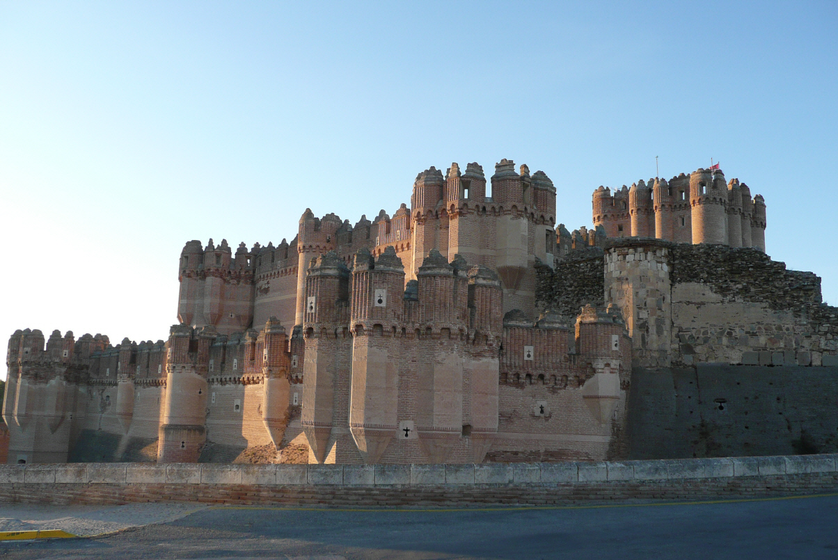 Zurück zum Camper und kreuz und quer zu verschiedenen Burgen. Eine halbverfallene römische Burg bei Padraza, eine Kastilienburg bei Turegan und nun stehen wir in Coca genau vor einer weiteren Burg. Das Land, durch welches wir gefahren sind ist flach. Alles abgeerntete Getreidefelder, vermutlich für Tierfutter, denn hier sind viele Schweinemastbetriebe. Neue Felder werden bewässert für Rüben, Mais, Erdbeeren und Kartoffeln. Es scheint, dass die Bauern hier versuchen von der einseitigen Getreideproduktion wegzukommen. Wir sehen Verarbeitungsbetriebe für Kartoffeln, Chips und Gemüse.