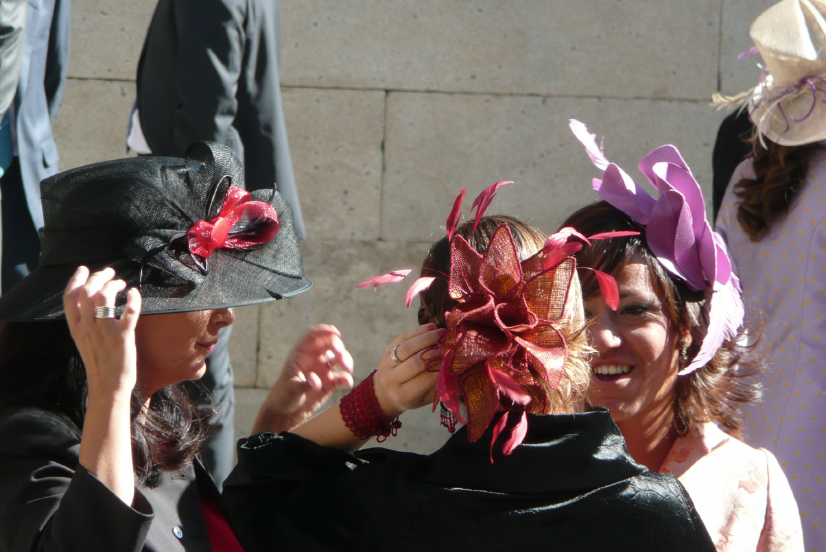 Fahren die 600 weiter bis Navalcarnera und halten bei einer typischen Dorfbar für unseren Morgenkaffee. Kaufen zugleich noch Feigen, Tomaten, Kartoffeln und Traben beim Gemüsehändler. Wir fahren in eine Nebelwand hinein und Bigi hat bereits Panik, dass das Wetter ändert – wir haben im Wetterbericht gelesen, dass Dienstag/Mittwoch Wolken, Regen und tiefere Temperaturen angesagt sind. Nach kurzer Zeit ist der Spuk vorbei und der Himmel ist wieder blau. Kommen in Toledo an und suchen wieder einmal verzweifelt einen Parkplatz. Dafür finden wir den Foto-Punkt. Von hier hat man eine herrliche Rundsicht auf die Stadt mit seiner Kathedrale, dem Alkazar und dem Fluss Rio Dajo. Nach langem Suchen finden wir in angemessener Entfernung zur Altstadt dann doch noch einen grossen Parkplatz (40 Cent pro Stunde). In Spanien hat es immer grosszügige Parkplätze, nur ist es nicht immer leicht, dieselben zu finden. Vor allem wenn man das Pech hat, wie wir heute, von der falschen Seite her um die Stadt zu kurven. Toledo liegt auf einem Hügel von drei Seiten vom Rio Dajo umschlossen – ähnlich wie Bern – die Gassen sind zum Teil sehr eng, aber trotzdem fahren viele Autos in verrücktem Tempo durch die schmalen Gassen. Wir finden auf Anhieb den dreieckigen Hauptplatz ‚Zocodore‘ und die Touristeninformation. Stadtplan holen und dann zum höchsten Punkt, dem Alkazar. Weiter über Gassen vorbei an vielen Souvenirläden, welche Rüstungen, Schwerter, Messer und sonstigen Kitsch verkaufen. Toledo ist bekannt für sein Marzipan und Bigi bleibt vor den vielen Confiserien immer wieder stehen und schaut sich die Auslagen an. Hier finden wir auch die anzusteckenden Federn, die wir an den Hochzeiten in Salamanca gesehen haben. Besuchen die riesige Kathedrale.