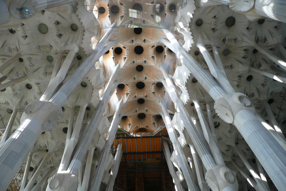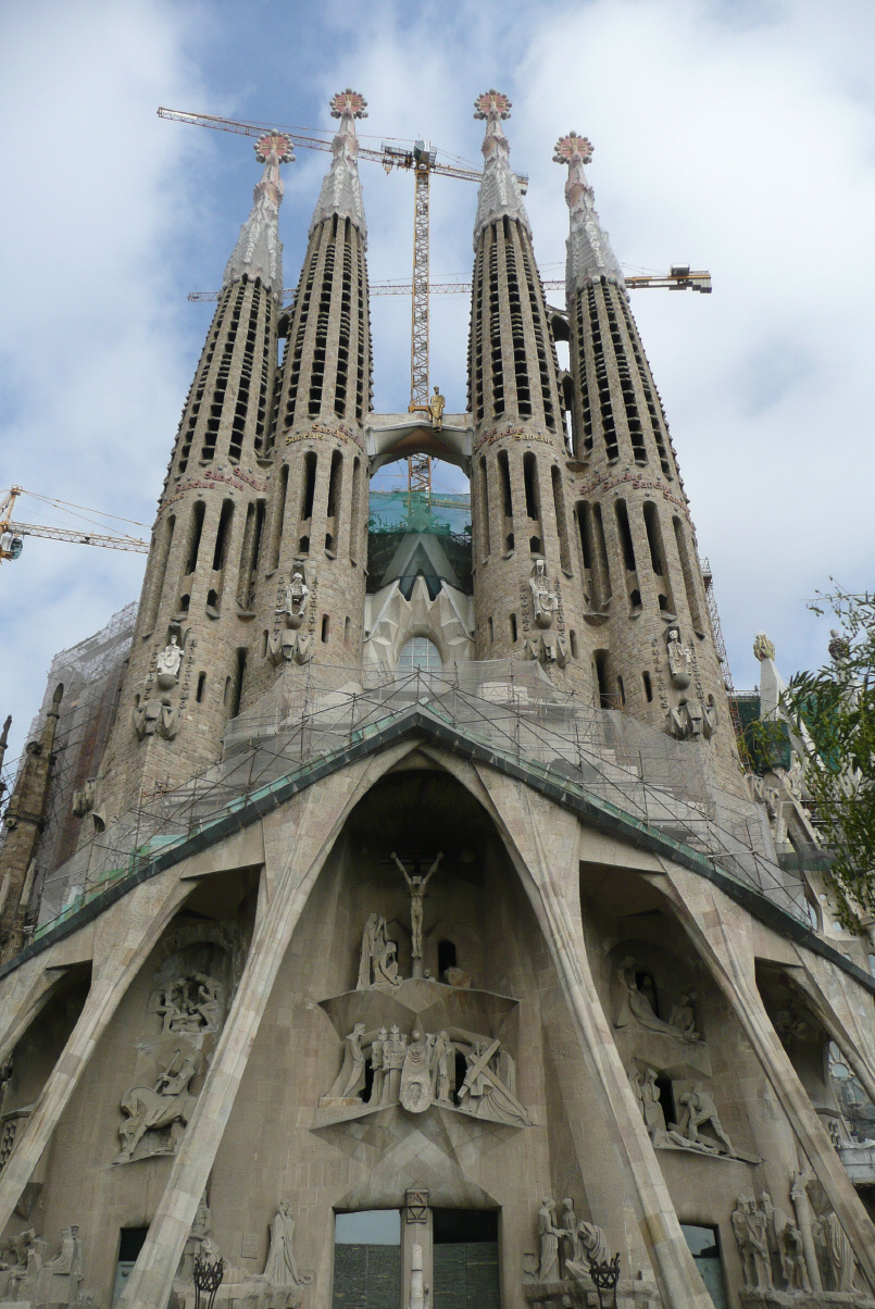 Das Kirchenschiff, die Säulen aufgebaut wie Bäume, soll 2010 fertig sein und bittet für 10‘000 Personen Platz. Auf der Empore kann ein Chor mit 1‘200 Sängern singen – das muss ja mega tönen. Die Fertigstellung ist für das Jahr 2030 geplant! Es arbeiten 200 – 300 Leute täglich am Bauwerk. Jeden Tag besuchen ca. 4‘000 Personen den Kirchenbau und bewundern die zwei fertigen Fassaden ‚Passion Christi‘ und ‚Weihnachtsfassade‘. Wir lassen uns mit dem Lift in 50 m Höhe bringen und bewundern die Aussicht des im Gange befindlichen Neubau. Über eine ganz verrückte Wendeltreppe geht’s dann zurück auf den Boden. Wir haben Hunger und suchen uns eine schöne Tapas-Bar und fahren später zurück mit der Metro zum Camper.