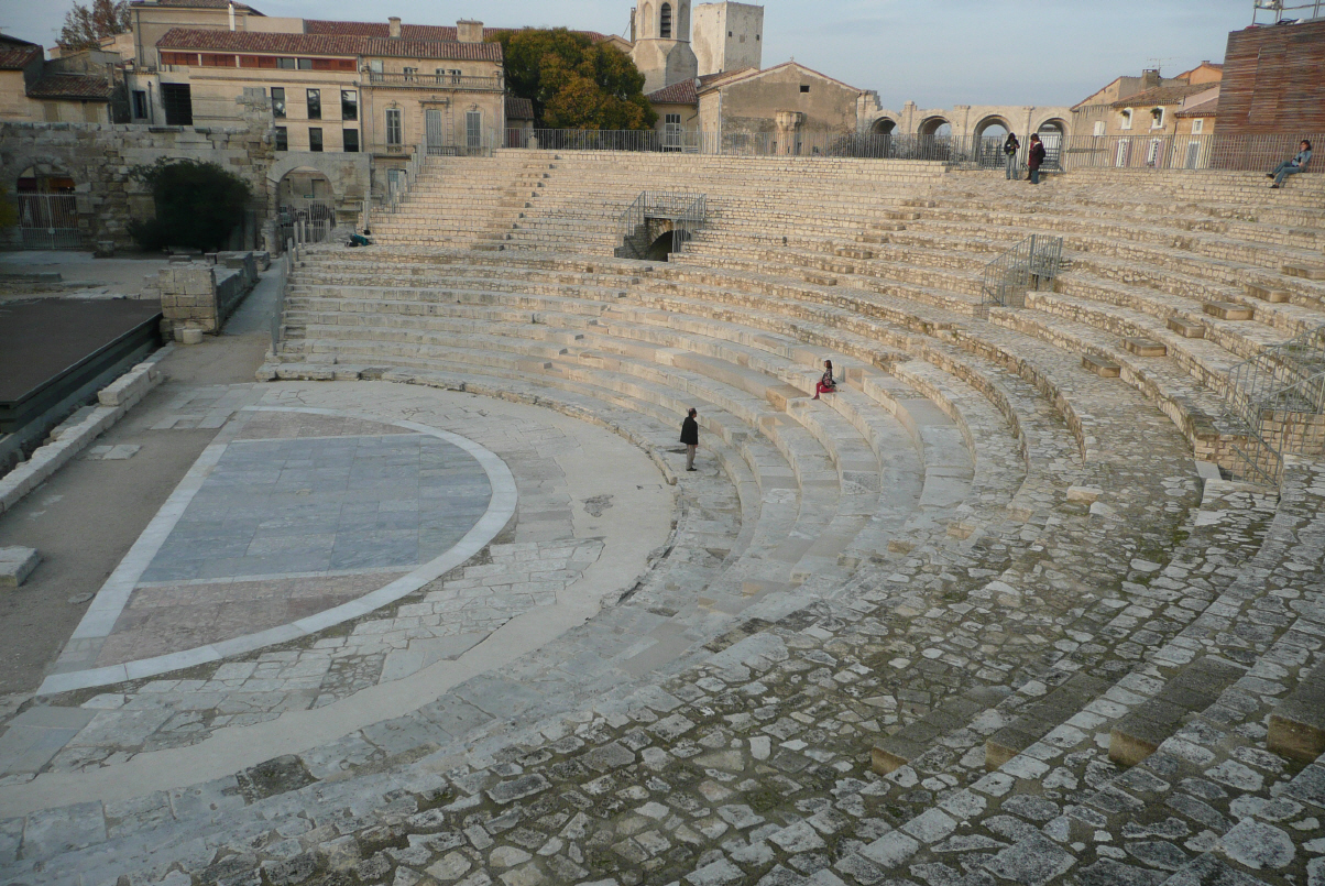 sowie das römische Amphitheater (oval), wo 20'000 Besucher Platz fanden. Hier lebte übrigens Vincent Van Gogh und malte z. B. ‚das maison jaune‘, ‚die Brücke‘ und schnitt sich im Wahn das Ohr ab. Dann weiter zum Stellplatz 20 km weiter in Comps.