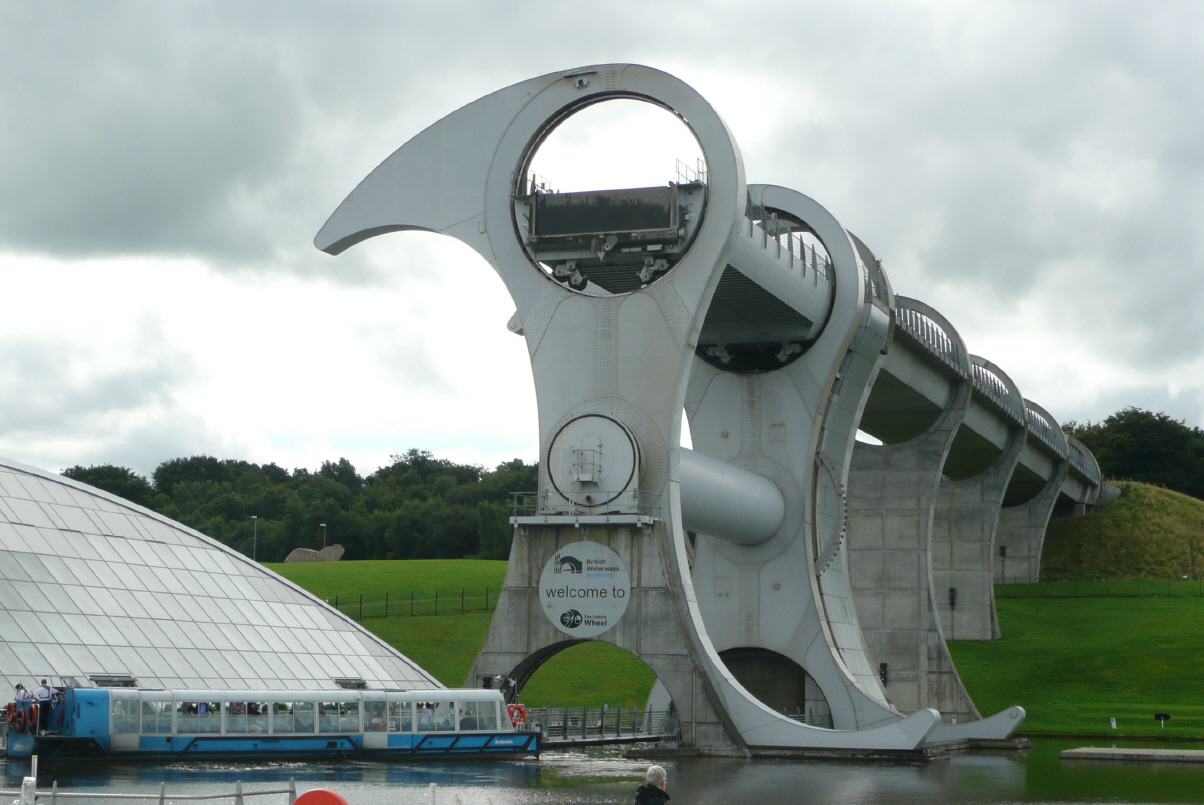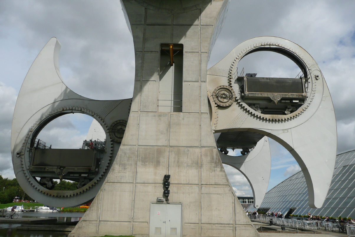 Wir schlafen aus und die Sonne scheint uns im Bett schon ins Gesicht. Wir hängen die Kleider nach draussen, aber schon 2 Stunden später regnet es wieder. Bigi arbeitet noch einige Zeit an der Homepage bevor wir los fahren. Campingplätze in England haben noch viele Zelte. Der Unterschied zum Festland ist frappant: fast keine Camper und wenn, dann Alte. Fahren nach Falkirk und besichtigen ‚the Falkirk Wheel‘, ein Schiffshebewerk, welches kleine Schiffe 35 m hoch in den nächsten Kanal hebt. 5 Schleusen werden dadurch überflüssig.