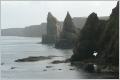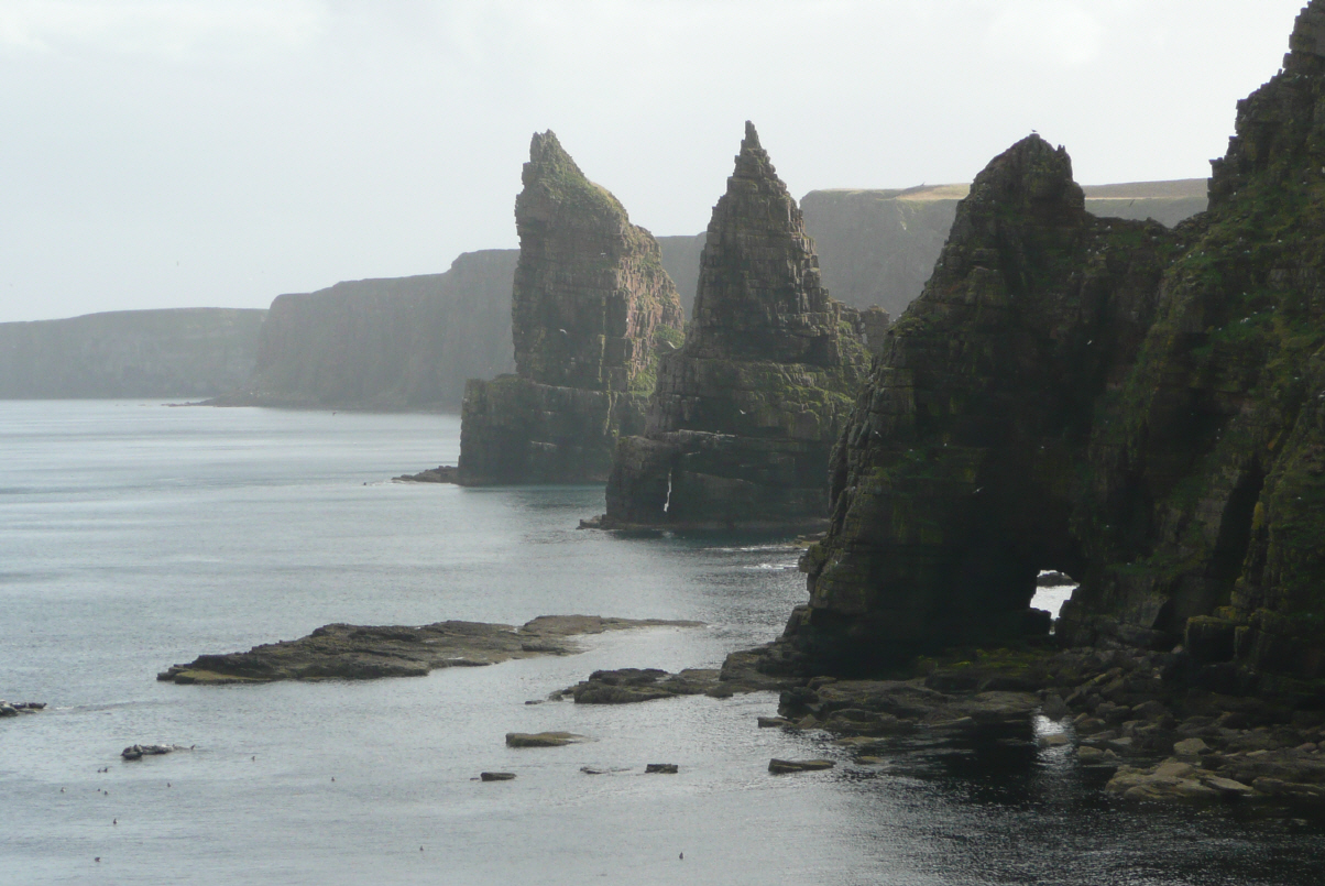 Etwas Regen, aber es hellt bald auf. Machen einen ausgedehnten Spaziergang am Sandstrand und Bigi kann es nicht lassen ……. einfach herrliches Sommergefühl …... als Handtuch dient das T-Shirt. Fahren an den nördlichsten Punkt von Schottland nach John O’Groats. Hier Wanderung zu den ‚Stacks of time‘, zwei Felsen, die wie Pyramiden vor den Klippen stehen.