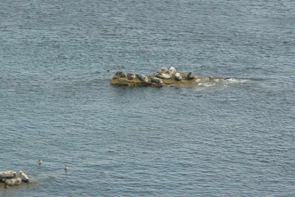 Hier sehen wir eine ganze Kolonie Robben (mind. 100). Lustig, den Tieren zuzuschauen. Liegen auf einem grossen Stein, tauchen oder halte den Kopf über Wasser und sünneled. Es windet leider sehr stark und wir beschliessen schweren Herzens weiterzufahren Richtung Mey Castle. Finden keinen guten Schlafplatz und fragen daher beim 'Castle Arms Hotel', ob wir auf dem grossen Parkplatz übernachten dürfen. Daher gehen wir dort essen. An der Bar probieren noch div. Malt Whiskys und kommen ins Gespräch mit dem Inhaber und den Gästen. Tut gut wieder einmal unter Leuten zu sein!