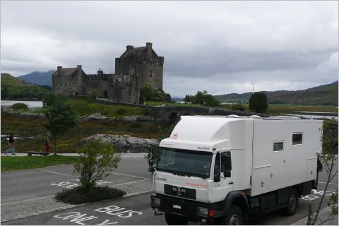 Früh morgens ist schon wieder stürmisch und der Camper schaukelt schön im Wind. Was soll man denn bei diesem Wetter in Schottland machen? Wir besuchen eine weitere Whisky Distillery, die historische Dallas Dhu Brennerei nähe Forress. Wir entwickeln uns zu Whisky-Liebhabern und auch das Fahren auf der linken Seite fällt wesentlich leichter. In der Nähe vom Fort Georg begeben wir uns auf einen Delphin-Viewpoint. Aber vermutlich ist es den Delphinen heute auch zu ungemütlich und sie bleiben unter Wasser. Zwischenstopp in Inverness, eine kleine recht schöne Industriestadt. Wir fahren weiter entlang dem Loch Ness zum Drumnadrochit Hotel. Besuchen das Visitorcenter. Die Story über Nessie hat im Jahre 1933 begonnen. Typisch Englisch, man unternahm alles, um das Ungeheuer zu finden, von Unterwasserkameras bis Echolot wurde alles mobilisiert. Natürlich negativ. Auch Kaspar hat sich ein 'Happy Ness' Tierchen gekauft – also Loch Ness eine wahre Geld-Goldgrube. Wieder einmal übernachten wir vor einem Schild ‚no overnight parking‘.