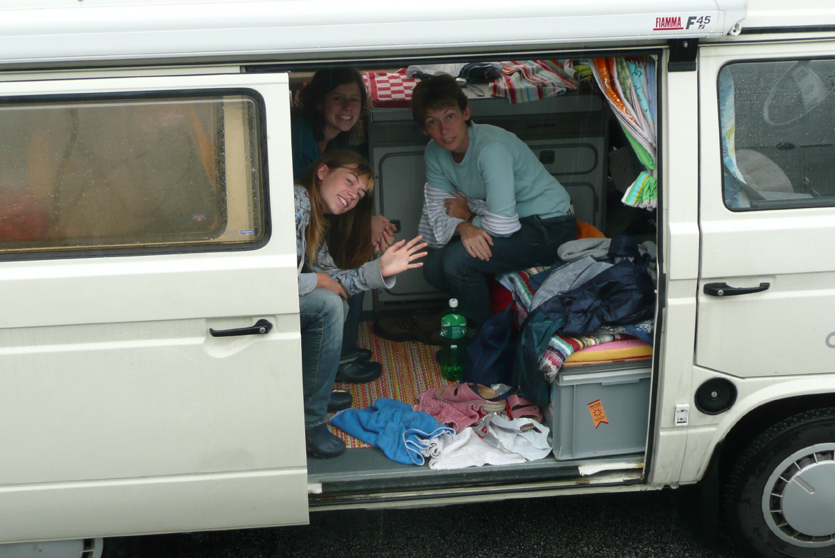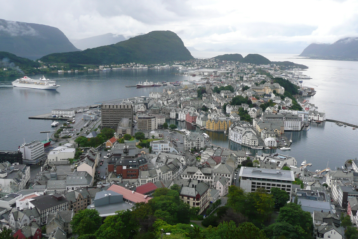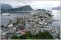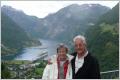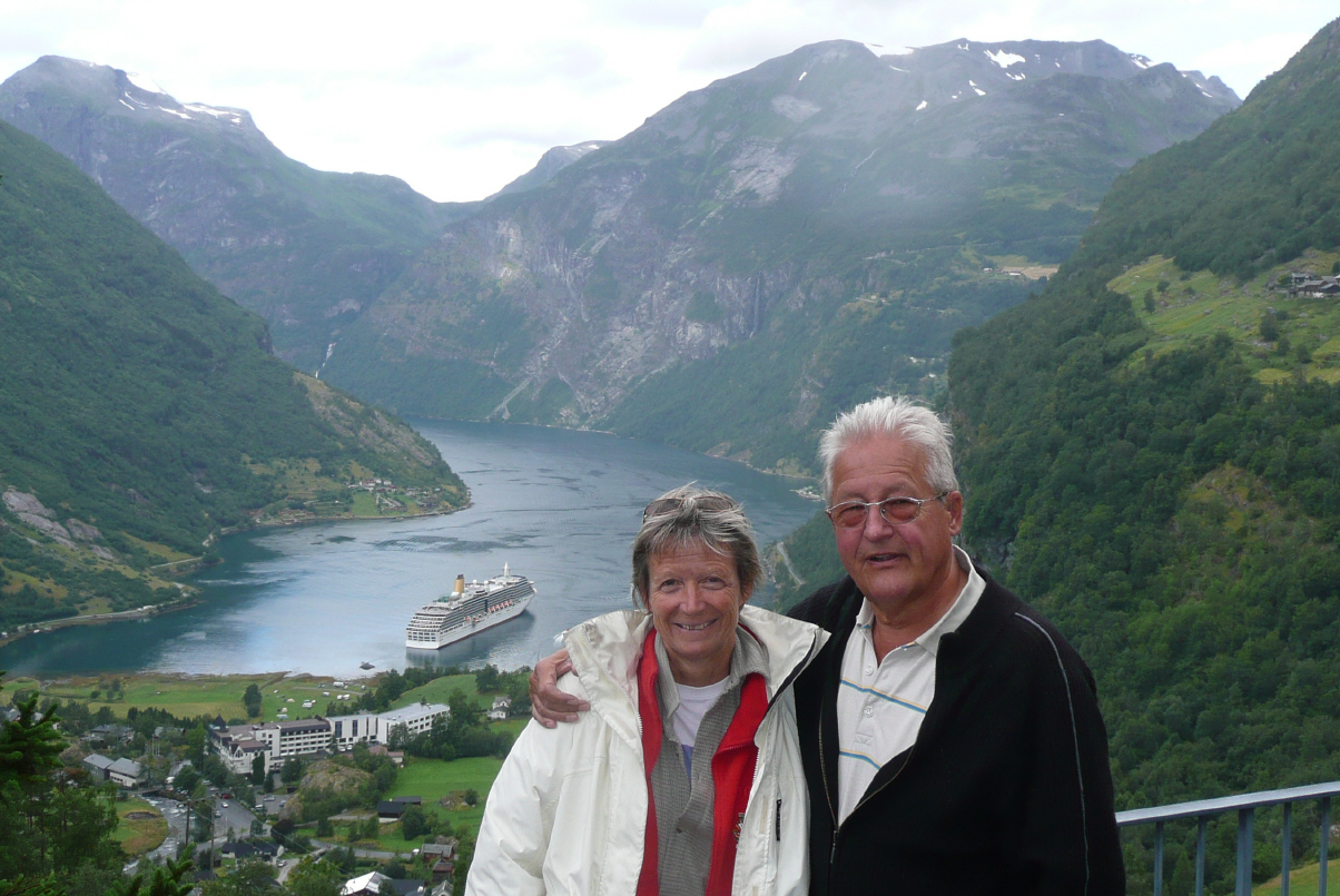 Es regnet in Strömen – äh, Kaspar hat den Tisch und die Stühle draussen gelassen, daher regnet es! Fahren nach Alesund (norwegische Jugendstilstadt). Natürlich besteigen wir den Aussichtspunkt (500 Stufen), um die berühmte Stadtpanoramafoto zu schiessen. Bummeln in der Stadt und fahren über die Strasse Nr. 60, über Pässe nach Hellesylt. Im Fjord ankern zwei grosse Kreuzfahrtschiffe (MS Europa und Opera). Verladen Camper auf die Fähre nach Geiranger und nun geht’s durch den spektakulären Geirangerfjord an den 7 Schwestern (Wasserfälle) vorbei. Uns kommt das Kreuzfahrtschiff MS Aida entgegen. Schöner Anblick zwischen den steilen Fjordwänden (1500 m). Nun campen wir am Geirangerfjord an vorderster Front am Wasser. Es wird gekocht, geschrieben, gelesen und unser Gästebuch bekommt einen neuen Eintrag von Family Suter