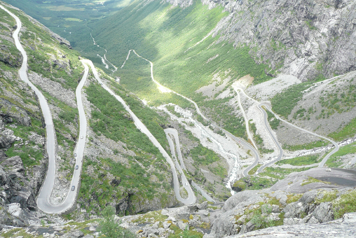 Morgens erwachen wir bei schönem Wetter. Das Warten hat sich gelohnt und wir sehen die Atlantikroute bei Sonnenschein. Foto von der schönen Brücke und dann los über die 64 nach Aldalness und über die spektakulären Trollstiegen: 11 Spitzkehren und sehr schmale und steile Strassen (12%) auf 852 m. Auf der Passhöhe gibt’s Picknick, Kaffe und Fotos. Die Girls wollen auch noch sämtliche Souvenirläden inspizieren, kaufen aber ausser Ansichtskarten nichts. Passvergleich: wie der Furka. Campiert wird heute auf einer Nebenstrasse vor Alesund. Heute machen wir es uns draussen am Wasser gemütlich mit Champagner und Natchos. Nachher gibt’s ein Salätli, Spaghetti und später noch Erdbeeren. Neben uns liegt das Zelt der Girls zum trocknen.