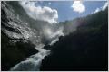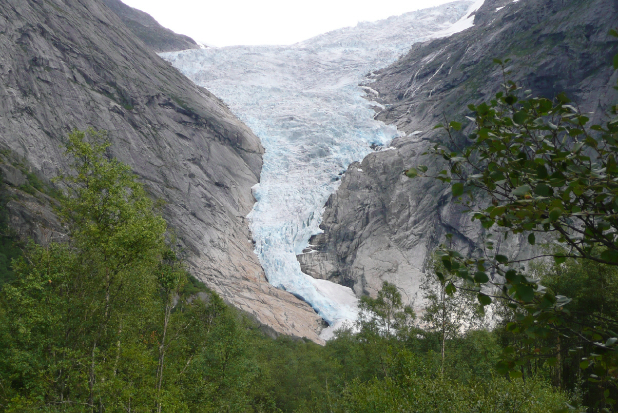 Beim Erwachen Sicht auf das in der Nacht im Fjord angekommenen Kreuzfahrtschiff. Es geht weiter über den sehr steilen Geirangerpass und auf der Rückseite geht’s durch diverse lange und dunkle Tunnels talwärts. Auf der Strasse 15 bis Stryn und auf der Nr. 60 weiter nach Olden (auch hier liegt ein grosses mondänes Kreuzfahrtschiff). In ein Seitental (14 km) bis nach Brinksdal, dann 45minütige Wanderung an den Fuss des Brinksdalgletschers – ein Muss für Norwegen-Reisende. Nun Campen wir in der Nähe von Sunde am See mit Blick auf einen der 5 Gletscher. Heute liegt Grillduft in der Luft – mh!