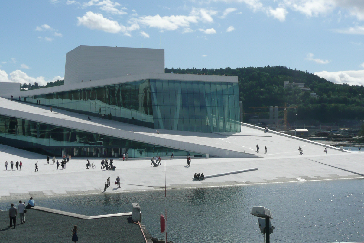 Wir machen einen Städtehalt in Oslo und parkieren vor der neuen Oper (im April 2008 eröffnet). Alles aus weissem Marmor, Glas und innen auch Holz. Schieflage bis unter Waser. Der Marmor blendet und was super ist, man kann überall auf dem Dach herum gehen und durch die Schieflage bekommt man ein wenig das Gefühl von ‚seekrank‘. Bummel durch Oslo und am Hafen essen wir in einem schönen Restaurant Muscheln und Shrimpssandwich. Weiterfahrt über Drammen nach Konigsberg (Ski- und Wandergebiet).