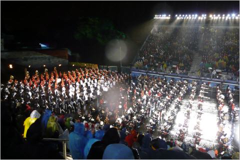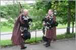 Kurzer Fussmarsch zur Busstation und ins City Centre, an die belebte Prince Street. Im Park stimmen einige Musiker einer Brass Band ihre Instrumente und geben auch gleich eine Kostprobe. Wir gehen ins Tattoo-Ticketoffice und erkundigen uns nach 2 Karten für heute Abend. Aber schon lange ausverkauft und für heute keine Annullationen. In die Altstadt, Besuch der Kathedrale (Lunchkonzert ist abgesagt wegen des Festivals) und zum Schloss. Hier verkauft eine Reiseleiterin Karten für das heutige Tattoo – da wir zu wenig Englische Pfund in der Tasche haben gehen die Tickets vor unserer Nase weg. Es wäre zu schön gewesen um wahr zu sein! Enttäuscht gehen wir in einen Pub: Eine Portion Yorkshire Pudding zu Zweit – Teigkorb gefüllt mit Kartoffelstock, 2 Würsten und Sauce und dazu ein Glas Rotwein. Wir geniessen die Altstadt, denn durch das Festival sind uh viele Leute auf den Strassen und an jeder Ecke stehen Musiker, Strassenkünstler etc. Besuchen ‚Mary Kings’s Close‘. Dies ist die heute unterirdische Stadt aus dem 17. Jahrhundert. Einfach schön, im Heute zu leben und nicht damals (z.B. wurden die Toilettenbehälter jeweils um 07.00 und 22.00 Uhr durch die Fenster auf die Strassen entleert). Inzwischen ist sogar schönes Wetter geworden und wir geben nicht auf, für heute Abend Karten für’s Tattoo zu kaufen. Tatsächlich erblicken wir einen Strassenverkäufer, der Karten für 25.- Pfund für 21.00 Uhr anbietet – wir schlagen sofort zu! Die Wartezeit verbringen wir in einem Pub und kommen ins Gespräch mit 3 Einheimischen, die uns auch Tips für unsere Tour geben. Sie verabschieden sich von uns mit ‚the show tonight must be lovely‘ - was soviel heisst wie: bei diesem Wetter ein wunderbares Erlebnis. Wir strömen in der Menschenmenge zum Castle (jeden Abend ca. 10‘000 Besucher, heute auch der Norwegische König im Rolls Royse chauffiert). Wir sitzen (auf der offenen Tribüne) keine 5 Minuten und es beginnt zu tröpfeln ……… der Regen wird immer heftiger und es gibt keine regenfreie Minute bis zum Ende der 90minütigen Show.Nicht bewegen, sonst geht ein weiteres Rinnsal von Regentropfen unter die Kleider. Ein grossartiges Erlebnis, die Show mit den internationalen Musikern. In der Schweiz würde die Veranstaltung mit solchen Regenwolken abgesagt. Aber real Scottisch – keine Show wird abgebrochen! Aber wirklich tropfnass suchen wir nachher ein Taxi, jedoch ohne Erfolg. Wir eilen in die Neustadt runter und finden mit Glück die richtige Busstation und schon nach wenigen Minuten sitzen wir im Bus ‚nach Hause‘. Um Mitternacht wärmen wir uns im Camper auf mit Flädlisuppe und Whisky. Zum Dessert gibt’s Citteriosalami.
