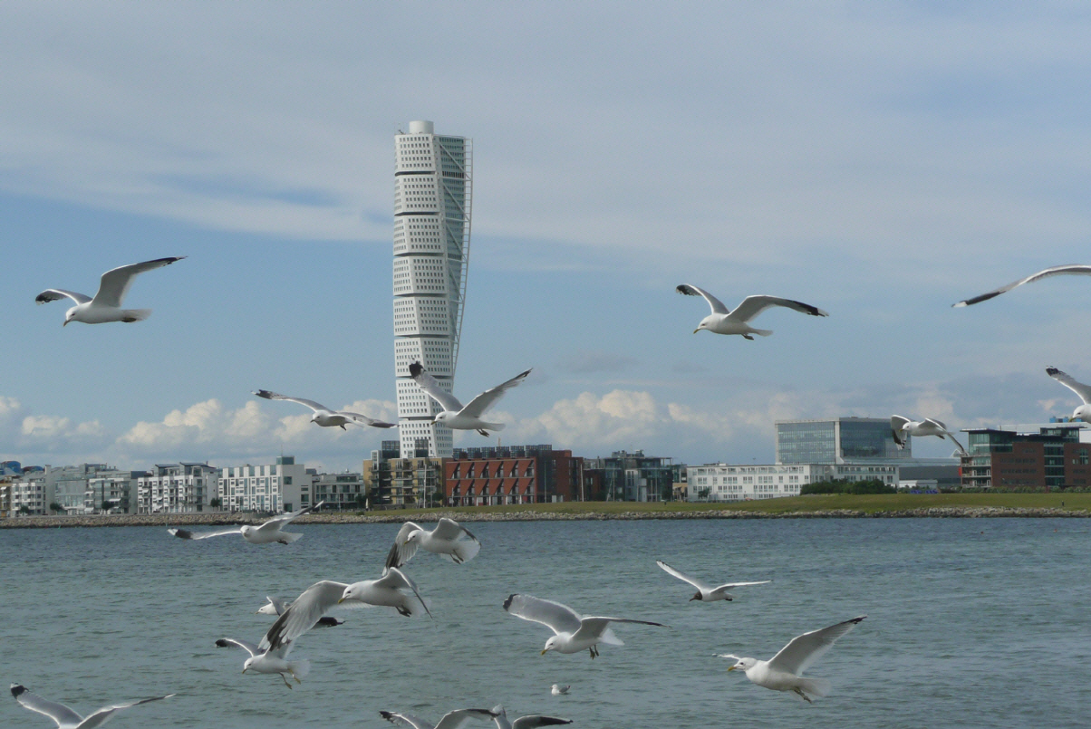 Wir benutzen die 2000 eröffnete Öresund-Brücke (4 km Tunnel, 4 km künstliche Insel und 8 km Brücke) nach Malmö/Schweden (Kosten ca. Fr. 125.-). Drüben angekommen belagern wir das Informationszentrum – oh Schreck, heute ist Nationalfeiertag ‚Midsummer‘ – und wir stehen wieder einmal da ohne lokale Währung! Weiterfahrt nach Lund, Besuch der ältesten romanischen Kirche Schwedens. Dieser Dom hat eine astronomische Uhr ähnlich wie in Rostock sowie eine sehr schöne Krypta. Wir wagen etwas Neues: wir beziehen Schwedische Kronen am Bankomat (Kaspar sagt aber zuerst einige Male: was ist, wenn die Karte drinnen steckenbleibt?). Wir sind halt in diesen Dingen etwas Banausen. Surprise: es klappt – aber wir kennen den Umrechnungskurs nicht und dieser ist auch nirgendwo ersichtlich (wir wissen uns zu helfen und erfragen diesen per SMS bei Kaspars Schwester in der Schweiz). Inzwischen regnet es in Strömen. Überhaupt ist heute sehr wechselhaftes Wetter mit Wind, Regen, Hagel und Sonnenschein. Weiterfahrt nach Malmö, wo wir Platz zum übernachten suchen. Sind fündig geworden beim Seebad (Jg. 1868). Am Strassenrand steht ein ungewöhnliches Schild ‚Achtung Gänse‘, was uns ein Schmunzeln entlockt. Oh weh, sogar Gloors halten an, wenn die Gänse im Gänsemarsch über die Strasse stolzieren. Wir sind etwas frustriert, denn von den erwarteten Strassenparties zum Midsummer ist weit und breit nichts zu sehen: tote Hose und alles wie ausgestorben schon den ganzen Tag! Bigi hat eine geniale Idee – sie backt aus den Zutaten und mit Anleitung des Kochbuches eine sogenannte Linsertorte – riecht verführerisch, muss aber zuerst noch auskühlen!