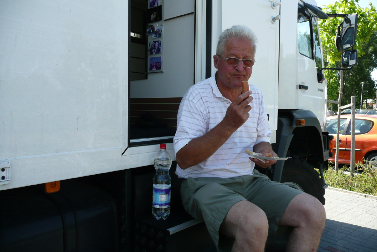 Relaxen – wir sind etwas müde vom reisen. Am Nachmittag kommt Bigi’s Verwandschaft (Cousine Christiane Koitzsch-Rosemann und Cousin Matthias Rosemann mit Ehefrau Claudia) aus Berlin nach Elstal raus um den Camper zu besichtigen. Trotz hitzigem Wetter kredenzen wir einen Schweizer Weisswein. Christiane und Matthias sind ja Schweizer, beide in Zürich geboren als ihr Vater Pastor der Baptistengemeinde Zürich (Salem) war. Wir bringen sie mit dem Camper zum Bahnhof Elstal. Christiane: ‚ach schade, wär noch gerne etwas weiter gefahren‘. Wir fahren zum Grillen nach Spandau zu Volker Bohle und Familie. Auszug aus dem handschriftlichen Tagebuch von Kaspar: ‚ich schlage mir den Bauch voll mit Würsten, Steak und Gemüse‘.