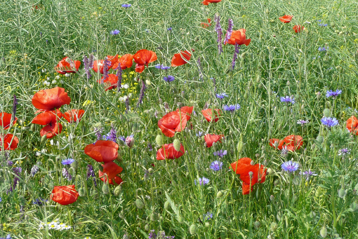 Uns ist aufgefallen, dass das Korn hier viel kleiner wächst (ca. 40 cm). Wir fragen uns, ob dies eine andere Sorte ist (wegen dem Wind), oder ob die Ernte wegen fehlendem Regen schlechter ist.