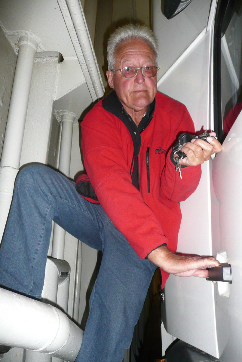 Trotz des schweren Abendessens haben wir gut geschlafen. Kleiner Abstecher zu unserem Waschsalon und Penny-Markt in Karlshagen. Weiterfahrt nach Rostock. Wir haben Glück. Die Fähre liegt schon im Hafen und wir können mit unserem Camper als Letzte einchecken nach Gedser/Dänemark. Im Schiffsbug ist es sau eng und wir können nur – wie die Affen – aus der Fahrerkabine heraus klettern.