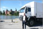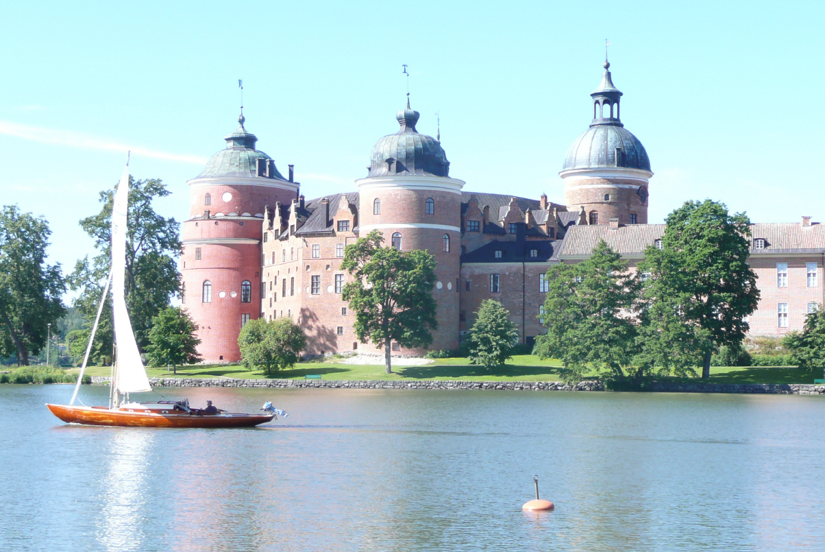 Wir sind schon kurz vor sieben Uhr morgens auf. Vor zehn Uhr sind wir schon in Vestervik. Kaspar knurrt immer wieder: ‚ich stehe nicht mehr so früh auf, so en Scheiss. Alles geschlossen, es ist kalt und es regnet‘. Mit Regenschirm und Windjacke schlendern wir durch den Ort, wärmen uns mit Kaffee auf und kaufen am Hafen Lachs in Citronen-Dill. Zurück beim Camper kochen wir Flädlisuppe, denn Kaspar schlottert wie sonst fast gar nie. Weiterfahrt über Nordköping, Katrineholm, Strangnos nach Mariefred, wo das Schloss Gribsholm steht. Unterwegs bei einer Baustelle (d.h. schmale Fahrspur) touchiert Bigi mit dem Seitenspiegel – päng - eine Verkehrstafel und der untere Spiegel ist umgeklappt. ‚Oh, ich hätte langsamer fahren sollen.‘ Worauf Kaspar erwidert: ‚dann hättest du die Tafel eben langsamer erwischt.‘ Smile.