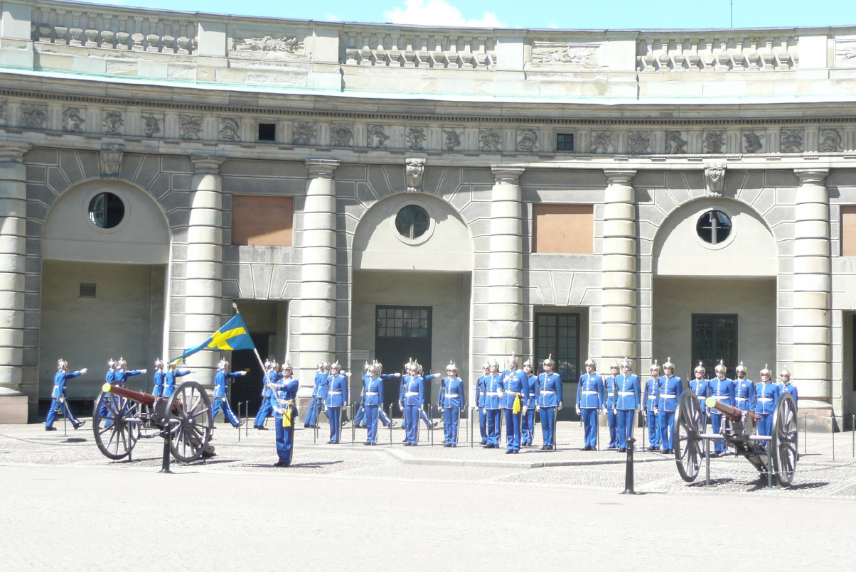 Kaspar begleitet Bigi zum ihrem Morgenbad im kalten Wasser. Fahrt mit der U-Bahn ins Zentrum (Billete für Pensionäre – auch Bigi arbeitet ja nicht mehr). Zu Fuss durch die engen Gassen der Altstadt zum Nobel-Museum, wo viele schwarze Stretchlimousinen stehen. Der Saudi-arabische Prinz soll sich mit Gefolge im Museum aufhalten. Beeindruckende Menschen (Kaspar: wenn man denkt, dass die vor 50 Jahren noch in den Sand geschi………). Mit Blaulicht und Polizeieskorte fährt der Tross los (später sehen wir die Limousinen vor dem Grandhotel, wo die Herrschaften speisen). Altstadtbummel – Bigi ist erstaunlich zurückhaltend, mit all den Boutiquen. Beim Schloss schauen wir uns die Wachablösung mit ‚Royal Brass Band‘ an. Ein stündiges Spektakel und Exerzieren: für Zürcher wie das Sechseläuten, für Solothurner wie die Marching-Parade oder tägliche Fitness. Weiter geht’s nach Skansen - Schwedisches Freilichtmuseum – viel grösser als Ballenberg und mit Zoo. Wir wollen ja wenigstens einmal einen Elch sehen (gewaltiges Geweih). Auf dem Rückweg nehmen wir die Strassenbahn aus 1946 sowie die U-Bahn. Hundemüde zurück auf dem Camping gibt’s Thai-Food: uns wird die Deutsche Speisekarte gegeben und wir bestellen. Kaspar entscheidet sich für gebratene Nudeln. Auf unserer Speisekarte waren die 2 Pfefferschoten nicht drauf. Uf, very spicy! Kaspar hat überlebt mit rotem Kopf und Schniefen.