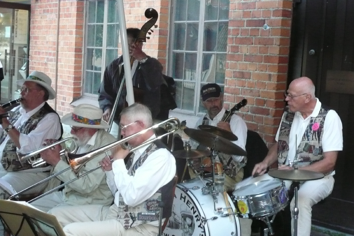 Morgens nehmen wir uns Zeit den Camper bereit zu stellen, Emails zu beantworten und die Homepage aufzuladen. Bigi lotst Kaspar aus Stockholm heraus (gut hat sie in der Jungschi Kartenlesen gelernt und meistert dies bravourös). Stockholm in Zahlen: 1,5 Mio. Einwohner, 1/3 der Gesamtfläche ist Wasser – und hier wollten Gloors irgendwo auf einem Parkplatz im Zentrum logieren, wenn möglich mit Meersicht! (bisher sind wir bei grossen Städten immer ausserhalb auf einen Camping gefahren und von dort aus mit den öffentlichen Verkehrsmitteln ins Zentrum). Na ja, mit der Zeit sind wir eben einfach mutiger geworden (ist ja der einzige Stress, den wir haben). Wir fahren der schwedischen Schärenküste entlang. Wir kaufen am Strassenrand Jordgubbar – die schmecken ja mal wieder nach Erdbeeren, und sind es auch. Campieren in Furusund. Hier sind Old-Jazz-Tage und in einigen Restaurants sowie auf dem Hauptplatz spielen diverse Jazz-Bands. Zuerst ist wunderschönes Wetter, aber die Wolken ziehen schnell auf und es regnet stark. Wir gehen zum Camper zurück, denn am anderen Ufer gibt’s auch ein Jazzkonzert und wir können die Musik mit offenem Fenster hören.