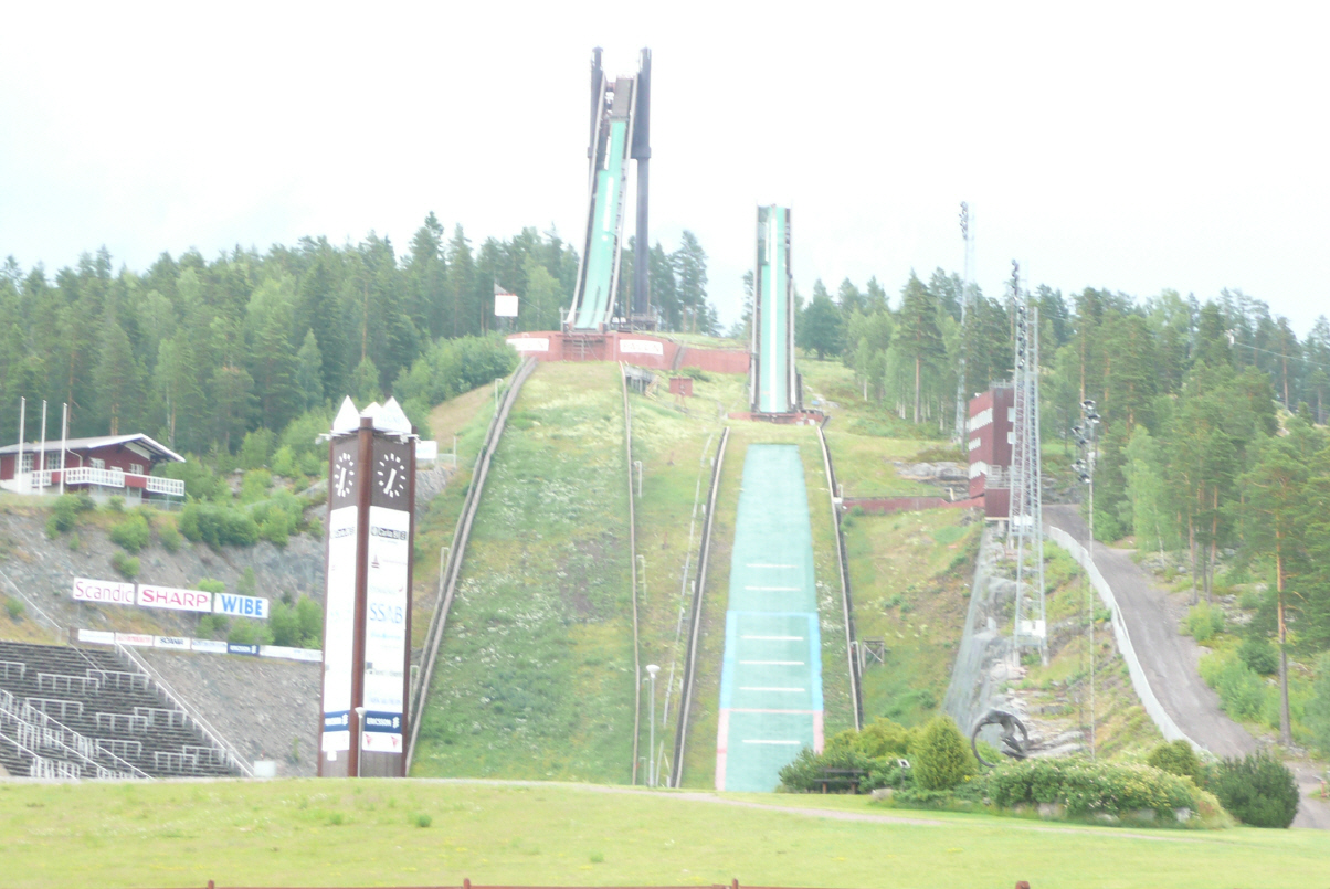 Schon die letzten Male, als Kaspar den Tisch und die Stühle nachts unter dem Fahrzeug deponiert hat, regnete es am morgen – und auch dies mal wieder. Vermutlich definitiv das letzte Mal, dass Kaspar abends nicht alles versorgt! Wir verkriechen uns bis 08.30 Uhr unter der warmen Bettdecke, denn es giesst aus Kübeln und ist draussen kühl (laut SMS soll es in der Schweiz sehr heiss sein). Wir frühstücken ausgiebig bis der Regen etwas nachlässt, denn Kaspar bleibt nichts anderes übrig als alles zu reinigen und verpacken. Von Uppsala sind wir ein wenig enttäuscht und fahren gleich weiter via Sala nach Falun. Bigi entdeckt beim herumschauen immer wieder einiges. In Sala gibt’s ein Silberbergwerk, das wir besichtigen: pro Jahr wurden hier 3 Tonnen Silber gewonnen, insgesamt ca. 400 Tonnen bis anfangs 20igstes Jahrhundert das Bergwerk stillgelegt wurde. Die tiefsten Schächte sind 450 m tief. Mit dem Lift können wir in den 155 m Schacht herunterfahren (dies ist auch die Höhe des Grundwasserspiegels) und wandern durch die Gänge mit vielen interessanten Erklärungen des Führers. Weiterfahrt nach Falun. Hier wurde bis 1922 Kupfer abgebaut (450 tiefe Stollen). Im Jahre 1628 ist ein Teil der Grube in der Nacht eingestürzt. So ist ein riesiger Krater von ca. 600 x 600 m x 70 m tief entstanden. Es bleibt uns lediglich die Wanderung rund um die Grube, da wir wieder einmal zu spät sind und das Museum schon geschlossen ist. Falun ist zudem bekannt für Skispringen – kleine und grosse Schanze (4-Schanzen-Tournee?). Auf der Weiterfahrt überquert eine Elchkuh die Strasse. Kaspar ist völlig sprachlos und überrascht, Bigi töggelt ein Geburtstags-SMS an ihren Vater und somit sind wir viel zu langsam um eine Foto zu schiessen. Die Erinnerung bleibt jedoch als Sensation! Liebe Skandinavien-Reisende: wer von Euch hat denn schon einen Elch in der freien Natur gesehen?! Wir übernachten an einem der vielen Seen in Rattevik. Kaspars Tagebuch-Eintrag: ‚Bigi übertrifft sich im Kochen! Rahmschnitzel, Nüdeli mit Erbsli und Rüebli‘.