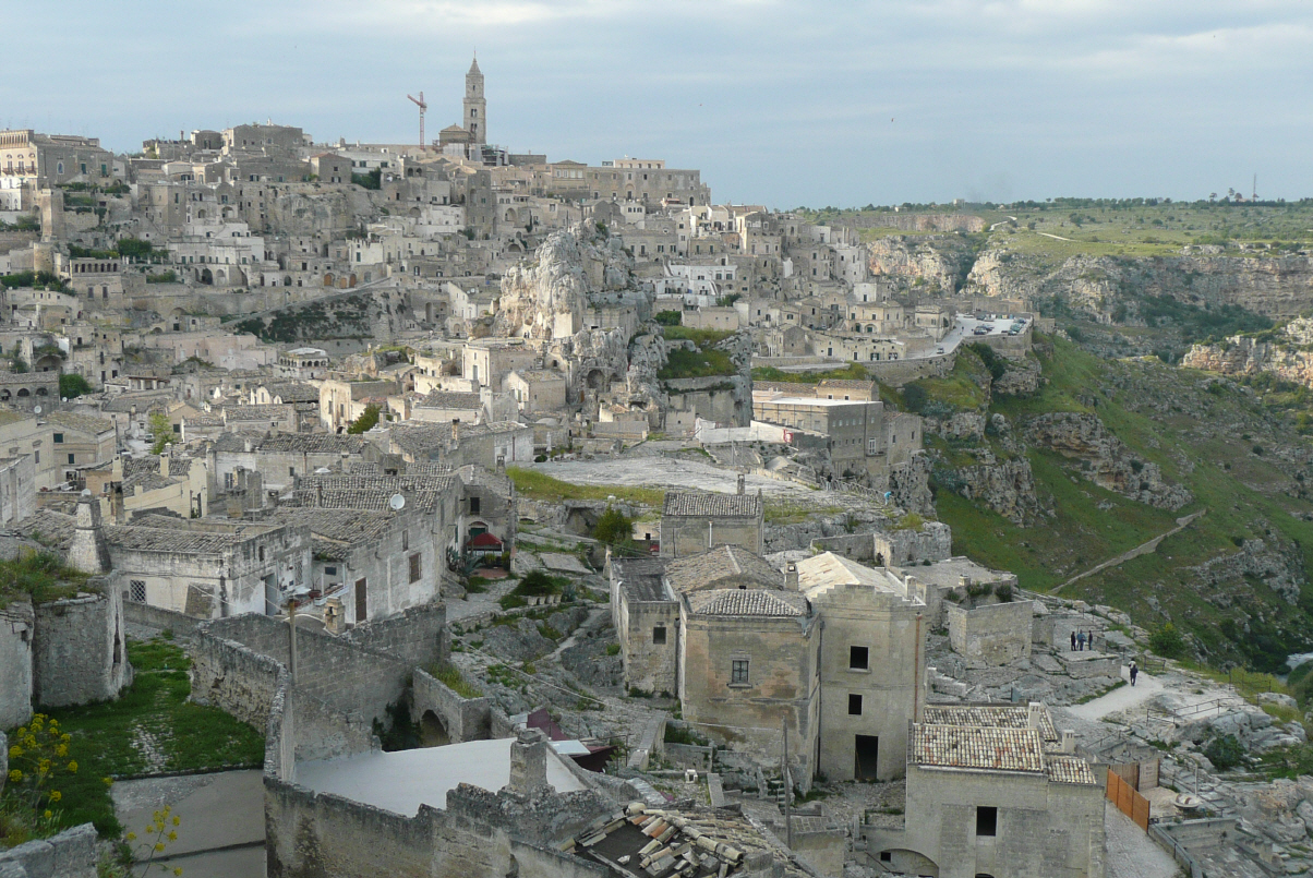 Morgenspaziergang am Sandstrand, dann liege ich 2 Stunden flach mit Kopfweh. Danach fahren wir über einen kahlen Pass, essen den üblichen Lunch (Pannini und Proscutto) an einem kleinen See fahren einige Stunden durch fruchtbare Landwirtschaftszonen. Hier wachsen vor allem Oliven und Orangen. Gegen Abend erreichen wir unser Tagesziel: Matera. Kaspar fährt schnurstraks ins Zentrum. Die LKW-Verbotstafel erkennen wir erst nach unserem Wendemanöver auf dem Hauptplatz. Ein sogenannter Touristenführer auf seinem Roller leitet uns zu einem nahen Parkplatz. Er bietet uns sogleich seine Dienste an. Er erzählt uns selbstverständlich, dass er arbeitslos und Vater von zwei Kindern sei. Über die italienische Politik wettert er in den höchsten Tönen. Wir betreiben direkte Entwicklungshilfe und akzeptieren sein Angebot der Führung. Sein Kollege steht mit dem Auto auch innert 2 Minuten auf dem Platz und fährt uns direkt in eines der alten Viertel der Stadt. Hier besuchen wir die in Felsen gehauenen Höhlen, wo bis ca. 1950 Leute gewohnt haben. Der Blick schweift über den kleinen Fluss im Tal und auf den nächsten Hügel mit der Domkirche. Hier wurde der Film ‚Die Passion Jesu Christi‘ von Mels Gibson gedreht! Unser Führer hat im Film als Soldat auch mitgespielt. Er empfiehlt uns ein gutes Restaurant und wir lassen uns dorthin bringen. Wir hoffen, dass wir nicht in eine Touristenfalle geraten sind und unser Camper bei der Rückkehr unversehrt ist – was auch so ist. Hier verbringen wir auch gleich die Nacht.