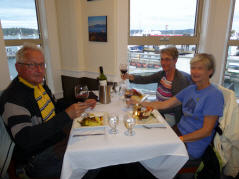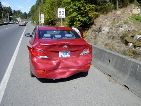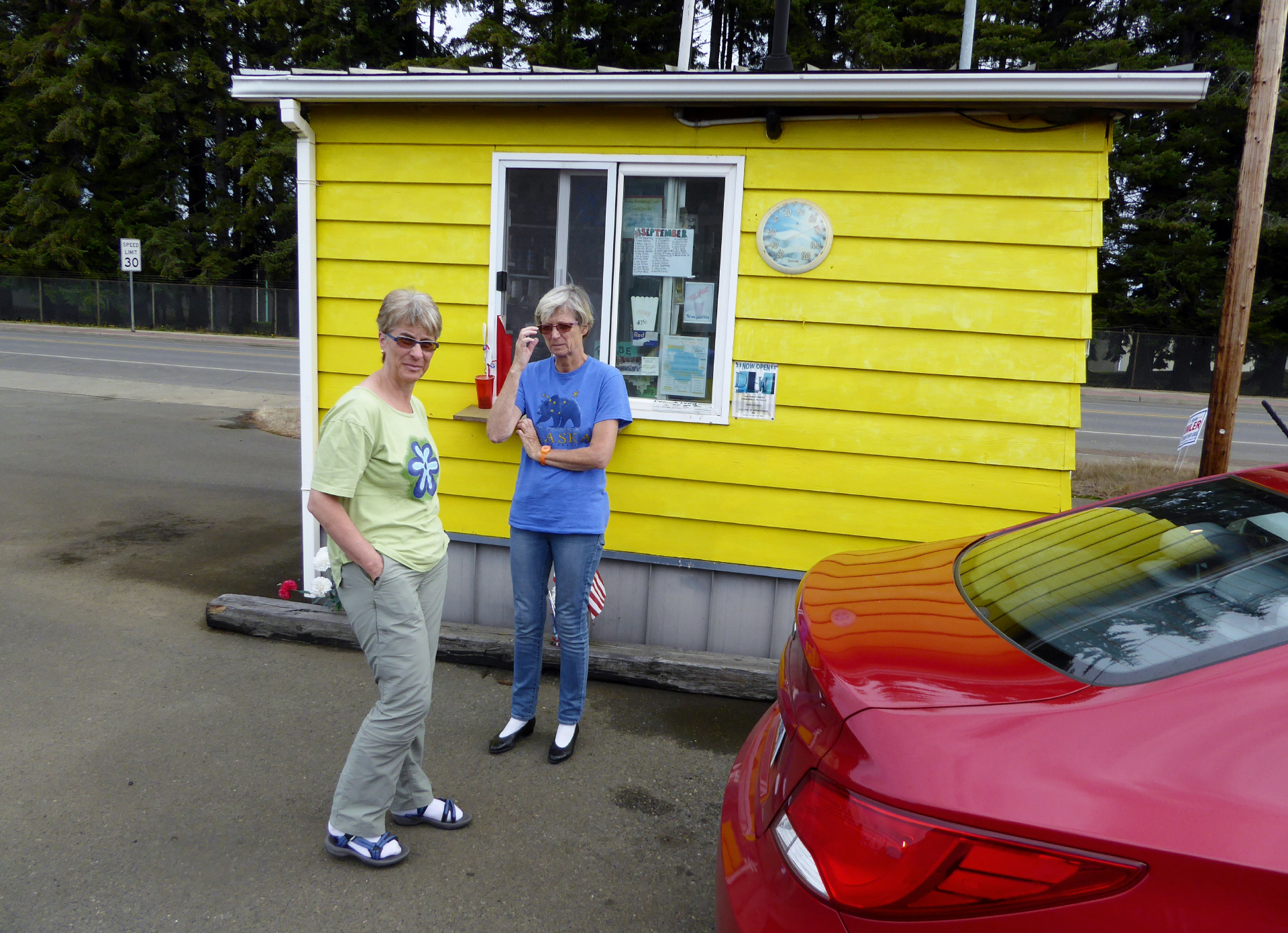 Dann die Küstenstrasse Richtung ‚Nanaimo‘. Es hat viel Verkehr. An einer Kreuzung in ‚Mill Bay‘ passiert es. Kaspar macht eine Schnellbremsung vor einem Rotlicht. Ein grosser Nissan Pick-up prallt uns mit voller Geschwindigkeit hinten ins Heck. Nun stehen wir mitten auf der Kreuzung. Unser Hyundai ist 30 cm kürzer - vermutlich Totalschaden. Weg von der Kreuzung an den rechten Strassenrand. Zuerst einander anschauen und durch schnaufen - wir sind froh, dass niemand verletzt ist! Der junge Nissan-Fahrer möchte keine Polizei, wir aber bestehen darauf, da: 1) amerikanischer Mietwagen, 2) Unfall in Kanada, 3) Fahrer aus der Schweiz. Der Polizist mit blinkenden Lichtern ist schnell hier. Er macht einen Unfallrapport. Kaspar ist unschuldig. Der Abschleppdienst war noch vor der Polizei hier. Nach anderthalb Stunden haben wir den Unfallrapport in den Händen. Hatten riesiges Glück im Unglück! Eine Polizistin ausser Dienst hat den Unfall gesehen. Sie fährt uns nachher 70 km zum Fährhafen in ‚Nanaimo‘. Sie will kein Geld. Wir schenken ihr Schoggistängeli und zwei Flaschen Wein. Machen unser Gepäck leichter, da vieles in Plastiksäcken verstaut ist. Alles, war wir nicht mehr unbedingt brauchen, wird entsorgt! Am Abend lädt uns Regula zu einem guten Essen im schönen Wasserflughafen-Restaurant ein.
