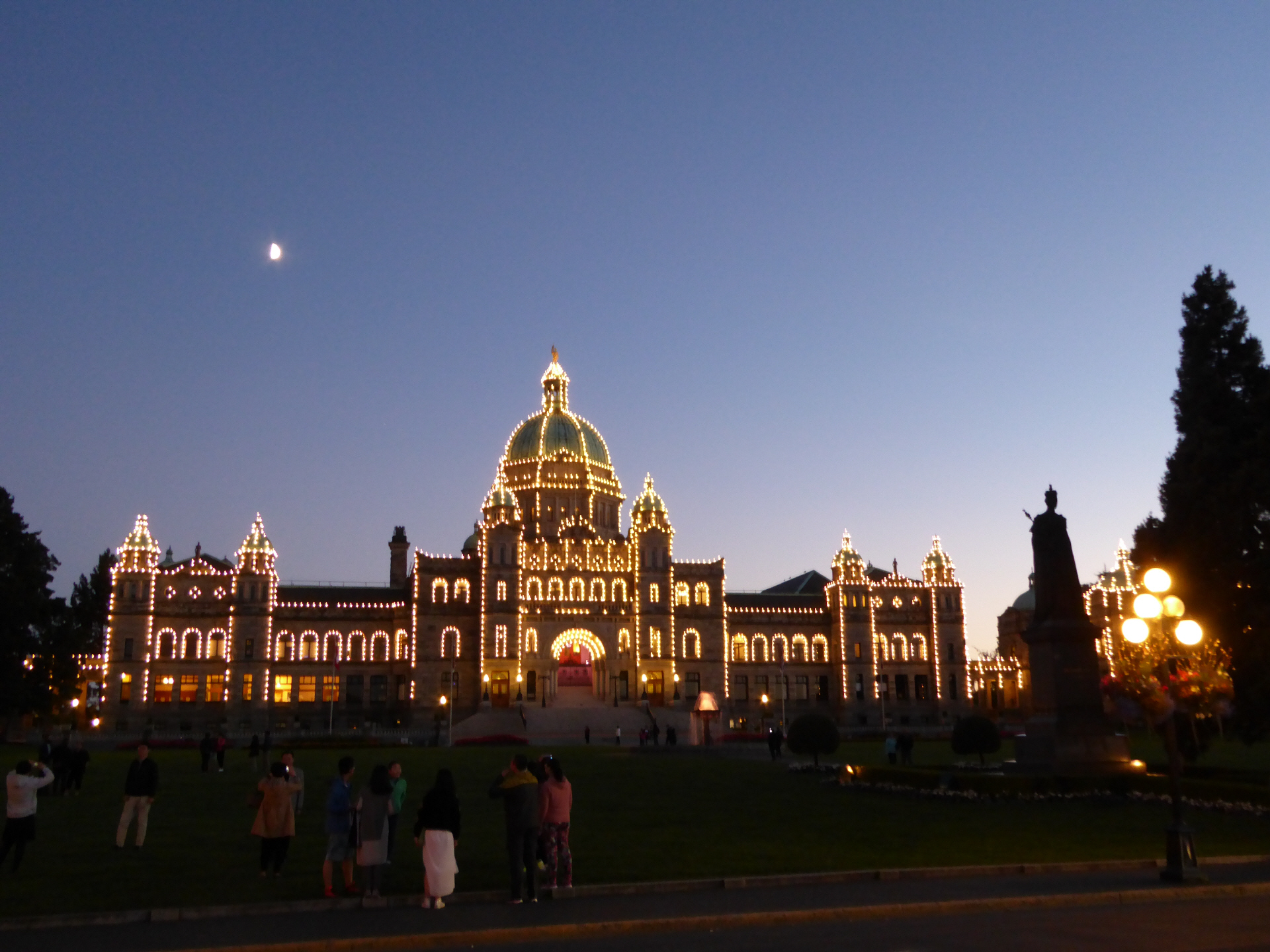 Mit der Fähre geht’s hinüber nach Vancouver Iland (Canada). Victoria ist eine Gartenstadt und die Hauptstadt von British Columbia. Das Parlamentsgebäude und das Luxus-Hotel ‚Fairmont‘ dominieren den Hafen. Kleine H2O-Taxis (Wassertaxi) bringen die Leute für 5 Can$ an jeden gewünschten Ort. Wenn Wale im Hafen sind, ist er für jeglichen Verkehr wie Wasserflugzeuge, Fähren und Kreuzfahrtschiffe geschlossen. Die ‚Fischerman‘s Warf‘ ist eine bunte Ansammlung von Hausbooten. Seehunde betteln um Fischresten. Sie klatschen mit den Flossen zum Gaudi der Touristen.