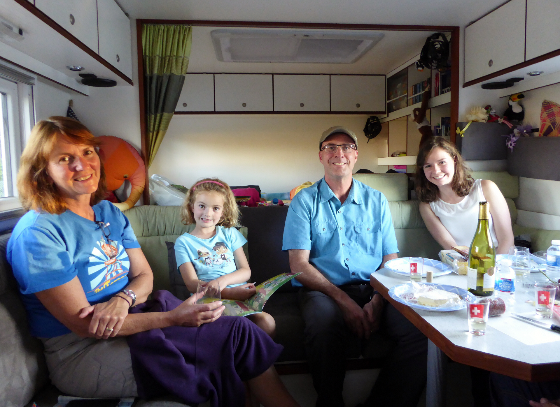 Im Frühstücks Restaurant sitzt am Nebentisch eine Frau mit zwei Girls. Die aufgeweckte 16-jährige fragt uns, ob wir Schweizer sind. Wir sagen: Ja. Nun stellt sich heraus, man glaubt es kaum, dass sie uns in ihren Ferien im Juni bei ‚Lake Louis‘ in Kanada gesehen und den MAN fotografiert haben. Der Vater ist ausgewanderter Genfer und sie alle haben das Schweizer Bürgerrecht beantragt. Wir laden die Family am Abend zu uns in den Camper ein. Die kleine Audrey sagt: ‚let’s have a party!‘ Sie haben Wein und Häppchen mitgebracht. Wir schwatzen lange.