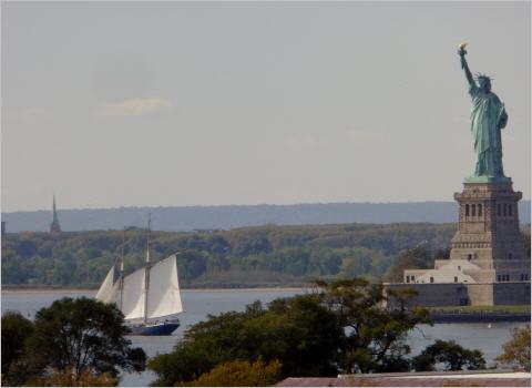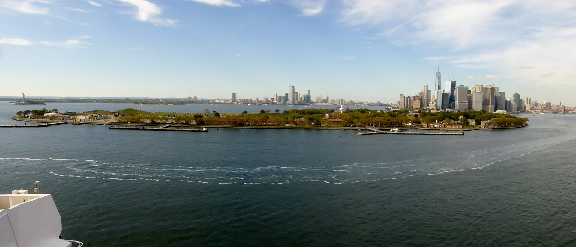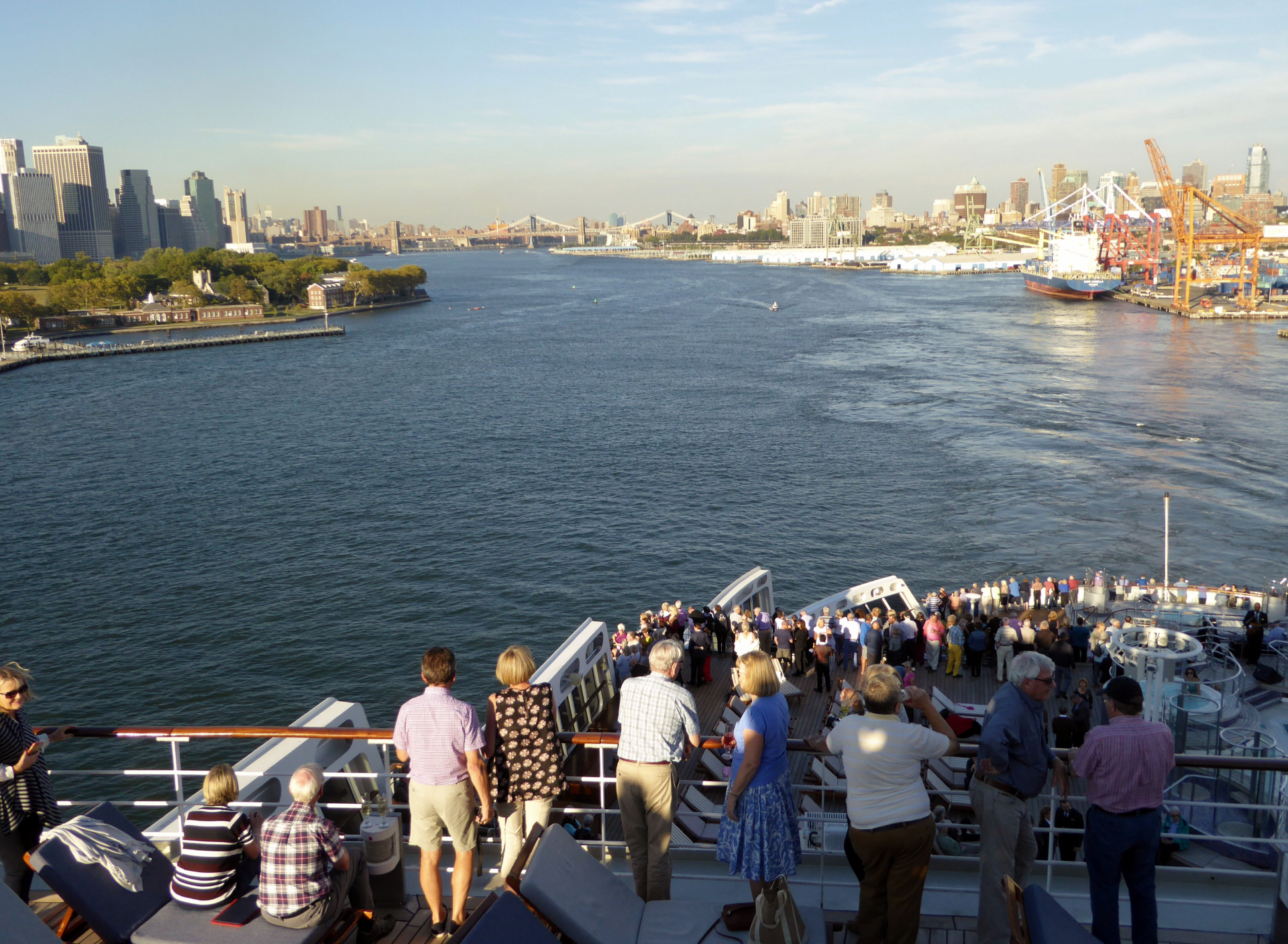 Mit dem luxuriösen Kreuzfahrtschiff ‚Queen Mary 2‘ schippern wir von New York via Rhode Island, Boston, Sydney/Nova Scotia nach Québec. Die Ausfahrt aus dem Hafen von New York erleben wir bei Postkartenwetter, einfach fantastisch!