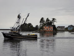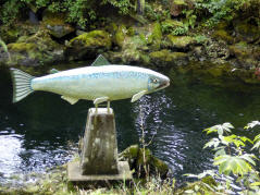 ‚City of the Salmon‘. Zu tausenden springen die Fische über eine Fischtreppe den Fluss hinauf. Die farbigen Häuser stehen auf Pfählen. Zum Lunch gibt’s Salmon.