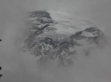 Der Vulkan versteckt sich hinter einer Regenwand. So soll er aussehen!