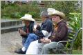Im Campingführer steht, dass das Dorf sehr schmale Strassen hat und die Campingeinfahrt sehr eng sein soll. Also parkieren wir bei einem Haus, welches mit Information angeschrieben ist. Mehr als einen lausigen Plan hat die alte Frau nicht, doch sie deutet uns, dass wir vor ihrem Haus parkieren dürfen – ein kleines Trinkgeld ist jedoch erwünscht. Marschieren mit guten Schuhen, Rucksack mit Zwischenverpflegung, Wasser und Windjacken über die Poltersteinstrasse. Pferdeführer überreden uns zu reiten anstatt zu wandern. Bigi willigt ein, obwohl sie fürchterlich Angst hat. Der Führer ‚Jesus‘ versichert ihr, dass es sein Job ist das Pferd zu führen. Nach 100 m braucht sie unbedingt einen Sombrero um sich abzulenken.