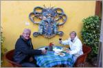 Streifen durch die schönen Gassen und finden einige lauschige Plätzchen zum verweilen. Trinken Margherita und Kaspar Margherita Fresas (Erdbeeren). War ihm etwas zu viel für den Magen, aber wir wollten noch nicht nach Haus in den Camper. Die dunklen Abende - ab 19 Uhr und man stelle sich vor: ohne TV - sind sehr lang! An der Bushaltestelle müssen wir lange warten und kommen mit dem gleichen Strassenhändler wie gestern ins Gespräch. Er spricht Englisch. War 12 Jahre in USA und hat Klimaanlagen und Heizungen installiert. Aber hier in diesem milden Klima gibt es absolut keinen Job in seiner Branche und so hat er umgesattelt. Er scheint in seinem neuen Beruf, Pommes Chips Verkäufer, ganz happy zu sein. Hautsache er verdient Geld. Wir vermuten, er kauft grosse Säcke Pommes Chips, füllt diese in kleine Plastiksäcke und bietet dazu scharfe Sauce und Limone an. So wandert er mit seinem Karton und Gestell durch die Strassen. Gute Geschäftsidee, würde vermutlich auch am HB Zürich funktionieren, jedoch dort nur mit Gewerbepolizeilicher Bewilligung! Gut können wir dem Busfahrer die Visitenkarte vom Campingplatz zeigen, sonst würden wir den richtigen Bus nie finden! Die Leute kennen diesen Ort fast nicht. Endlich beim MAN angekommen sind wir vollkommen geschafft und legen uns zuerst mal eine Runde ins Bett.