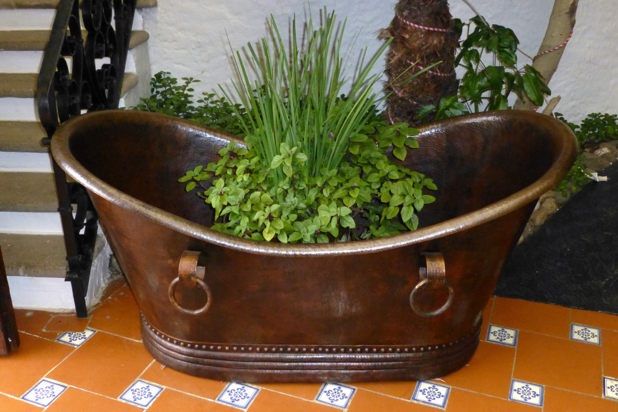 Kupferbadewannen für zweitausend Dollar sind zu haben. Leider haben wir keinen Platz im MAN! Wie immer kauft Bigi ein. Sie hat immer eine Ausrede, wer von den Freunden daran Freude haben könnte. Nun weiter nach ‚Uruapan‘. Wir kommen an grossen Avocado-Plantagen vorbei. Übernachten auf dem Hotelparkplatz des schönen Hotels ‚Pie de la Serra‘. Bigi hat gelesen, dass die hiesige Spezialität ‚Avocado-Suppe‘ sein soll. Sie versucht dies ohne Rezept zu kochen.