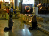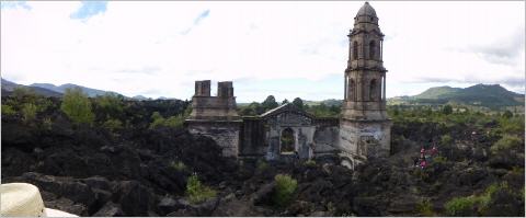 Es ist nur ein 45-minütiger Ritt bis zur Lava-Kirche, aber Bigis Knie tut ihr dort bereits fürchterlich weh. Steigen zusammen mit vielen Mexikanern über das scharfkantige Lavagestein zur Kirche empor. Es ist wirklich ein kleines Wunder, dass die Frontseite und der Altar stehen geblieben sind.