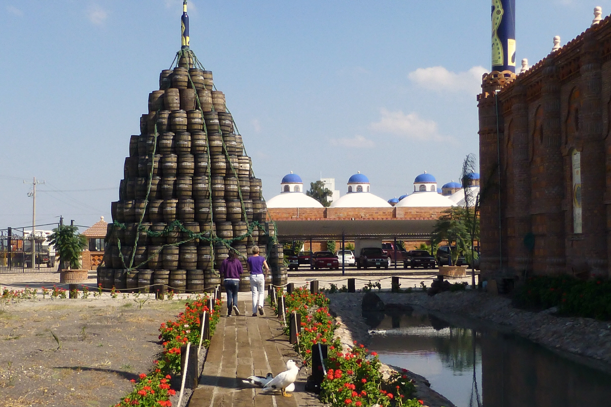 Kurz vorher steht an der Strasse ein schönes, schlossartiges Gebäude, welches sich als Tequilleria herausstellt. Natürlich wird gestoppt und die Bodega besucht. Die Führerin zeigt uns die grosse Lagerhalle mit den vielen Holzfässern. Die Spezialität des Hauses: Tequilla 99‘000 Horas, welcher 11 Jahre und 4 Monate lagert. Klar muss alles probiert werden. Zwei kleine Flaschen und ein guter Käse, ähnlich einem Parmesan, wandern in den Einkaufskorb. Finden auch die Ausfahrt ‚Guanajuato‘. Unser MAN ist für diese Stadt viel zu gross. Der Camping liegt 7 km ausserhalb der Stadt. An der Kreuzung steht ein Typ, welcher uns für 20 Pesos dorthin bringen will. Beim Camping will er dann plötzlich 20 US-Dollar, da es weit war! Geben ihm 60 Pesos, was viel zu viel ist. Es ist nicht zufrieden, aber der Camping-Manager meint dies sei so oder so schon zu viel! Nun stehen wir alleine auf dem grossen Areal. Am Montag sollen drei Gruppen hier ankommen. Gestern ging uns das Propangas aus. Immer ausserhalb von grösseren Städten sind die Gasstationen zu finden. Haben in der Schweiz einen Fülladapter gekauft, der sich nun bewährt. Die leer Gasflasche ist im Nu mit 10,5 kg Propangas gefüllt (ca. CHF 10, in der Schweiz das Fünffache). Die spezielle, halb durchsichtige Gasflasche macht den Mexikanern Eindruck und wird fotografiert. Sie sind auch sehr überrascht vom leichten Gewicht.