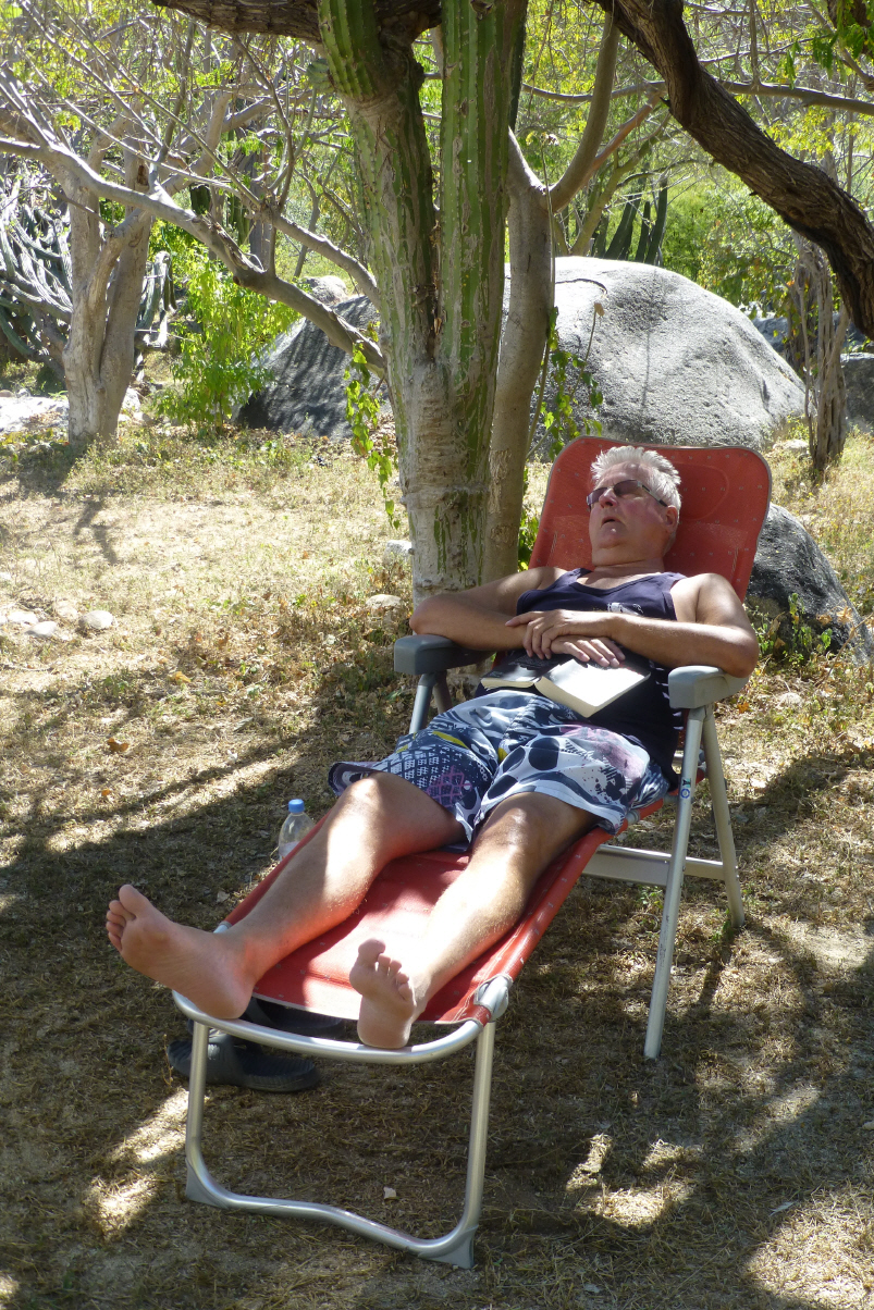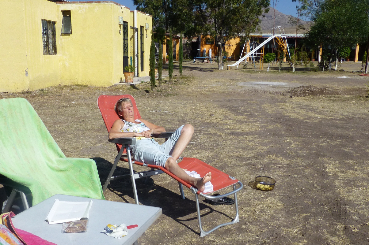 Kaspar bereitet den MAN für die Weiterreise vor. Bigi sitzt an der Sonne, aber nicht lange, da wird sie schon wieder aktiv. Sie backt Brownies. Dies daher, weil der Camping-Manager nicht kommt und wir auf unsere frisch gewaschene Wäsche warten. Vermutlich werden wir zu einer weiteren Nacht genötigt. Dafür wird die Homepage wieder aktuell. Am Nachmittag erscheint ein hier lebender Amerikaner, welcher mit dem Camping-Manager einen Termin hat. Dieser kommt jedoch nicht. Der Amerikaner bezeichnet heute Montag als ‚Sun-Lunes‘ (Sonntag-Montag) und erklärt uns, dass dies so viel heisst wie ‚blauer Montag‘ (die Mexikaner erscheinen montags oft nicht zur Arbeit).