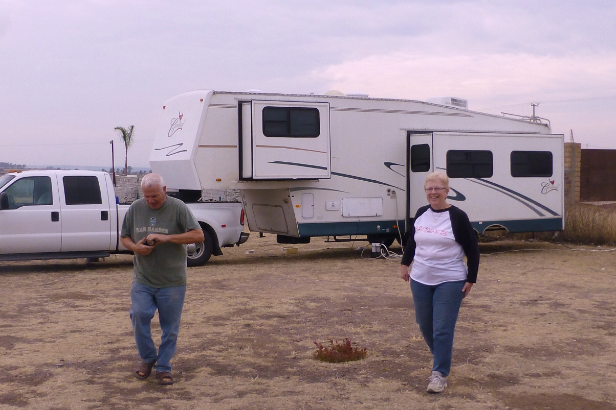 Kurz darauf kommt ein älteres, amerikanisches Ehepaar mit drei Hunden und einem riesigen amerikanischen Trailer daher. Carole verwickelt Bigi sogleich in ein missionarisches Gespräch. Sie haben 500 Paar gebrauchte Schuhe sowie viele Bibeln dabei, um diese an arme Mexikaner zu verteilen. Und nun erscheint doch noch der Camping-Manager und behauptet, er wäre am Morgen zwei Stunden hier gewesen; hätte gesehen, dass unsere Türe offen stand?! Kaspar glaubt ihm nicht, denn wir waren wirklich keine einzige Minute weg! Sie holen noch unsere Wäsche in der Wäscherei und so können wir wenigstens morgen wegfahren. Die Brownies waren übrigens noch nie so gut wie heute. Bigi hat den Gasbackofen langsam im Griff. Es braucht einfach Zeit, Zeit, Zeit!